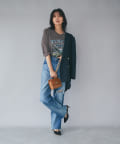 シンプルなデニムスタイルにインパクトのあるプリントが映える一枚。