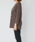 ⇒特徴的な違いは大きく分けて襟元・袖口・丈感にあります。こちらのアイテムはクルーネックで襟ぐりはそこまで広くなく、お袖は7分丈のリブなしデザインです。バックスタイルも長すぎず、フロント側の丈との差が少なめとなっております。