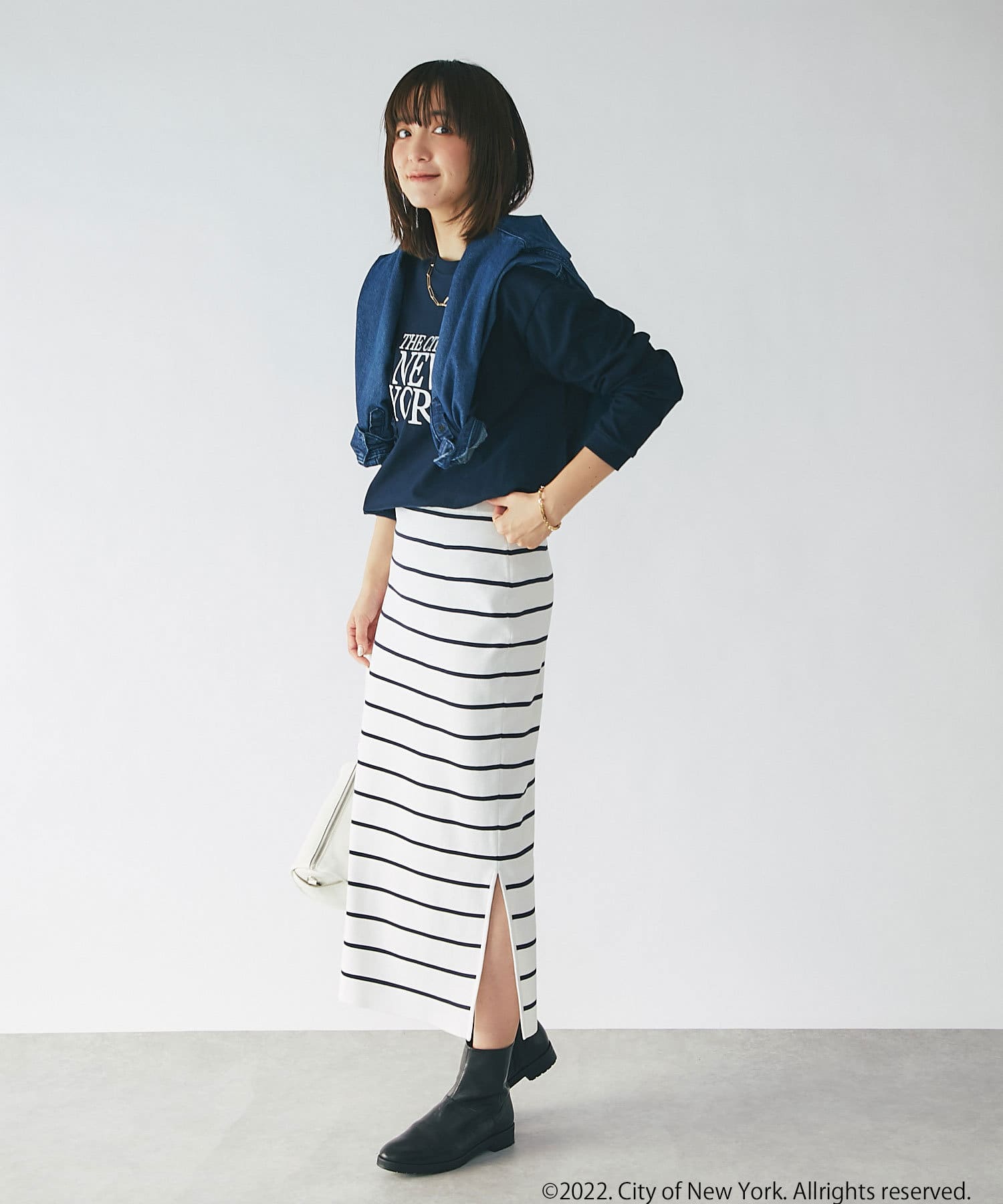 タイトスカートやフレアスカートなどレディアイテムに合わせれば大人の抜け感を演出できます。
