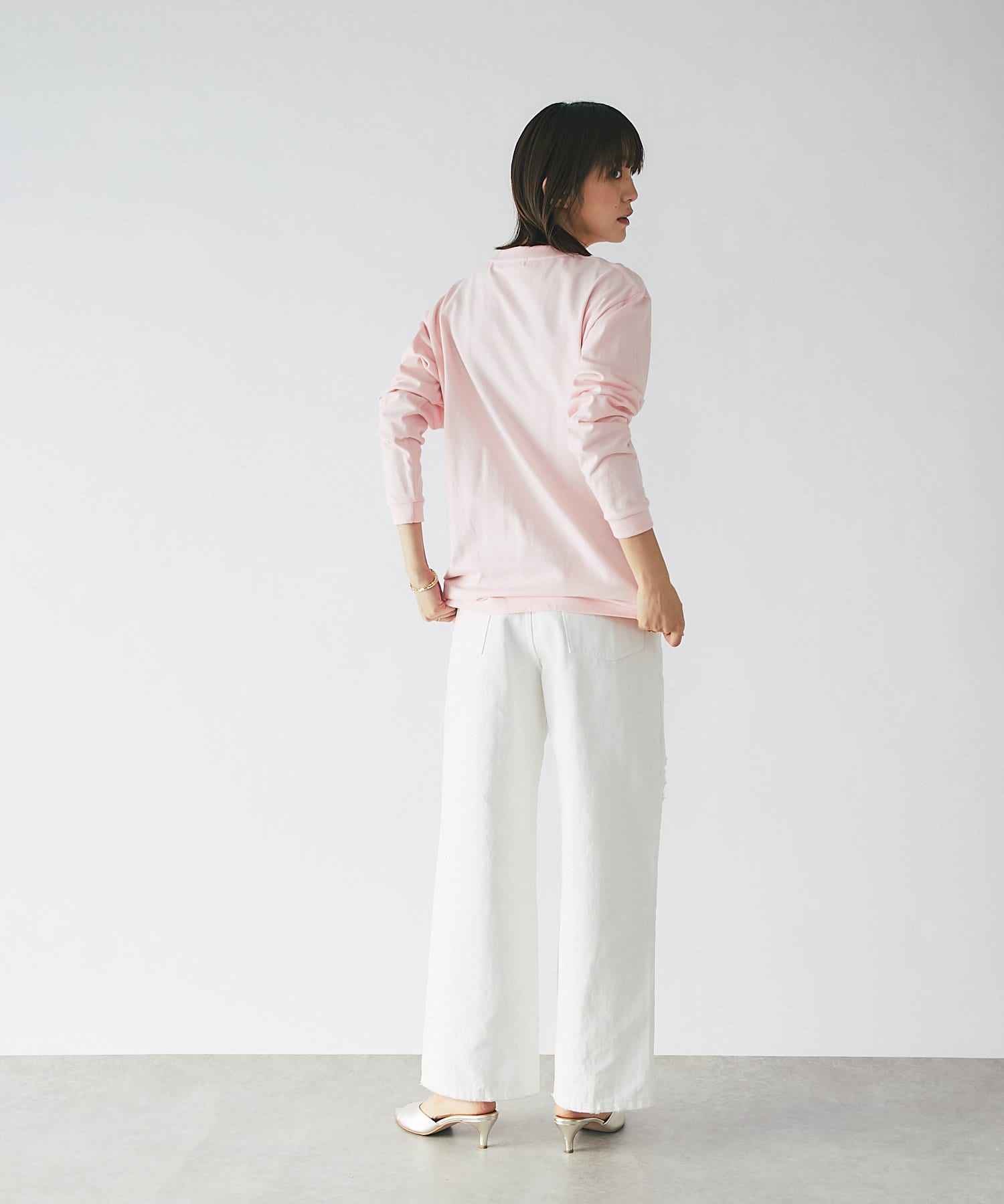 洗い加工により古着っぽさを際立たせ、コーディネートに程よいアクセントを添えてくれます。 ホワイト・ピンク・ネイビーの3色展開で様々なテイストにマッチしやすいところも魅力的です。