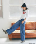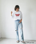 シンプルなデニムスタイルにインパクトのあるロゴが映える一枚。
