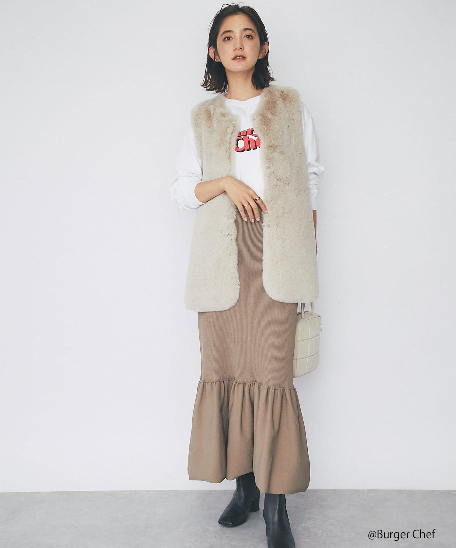 スカートなどのレディライクなアイテムでキレイメカジュアルに合わせるのも◎