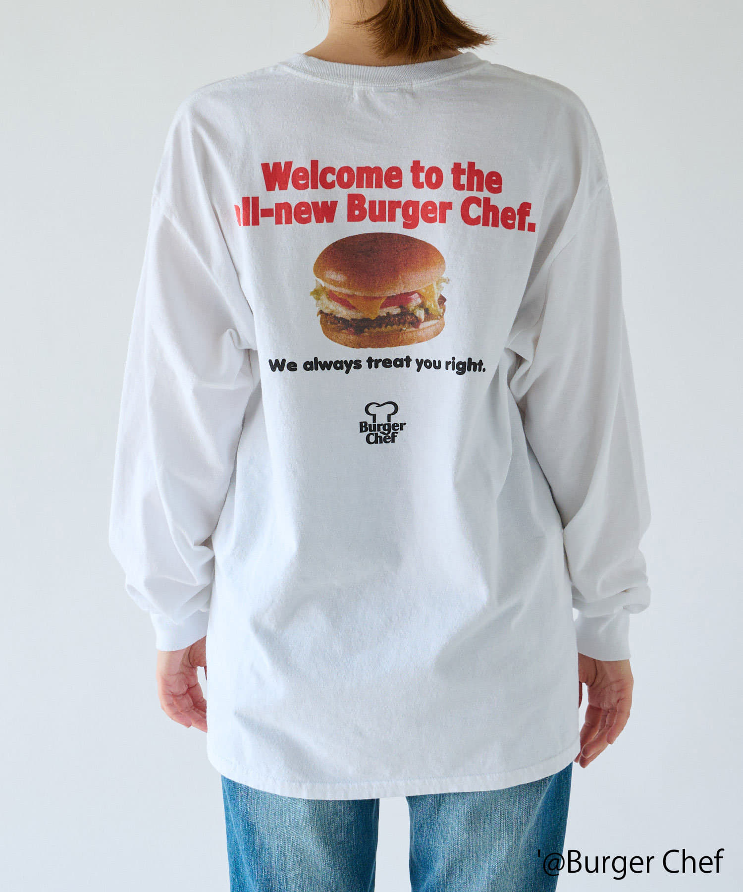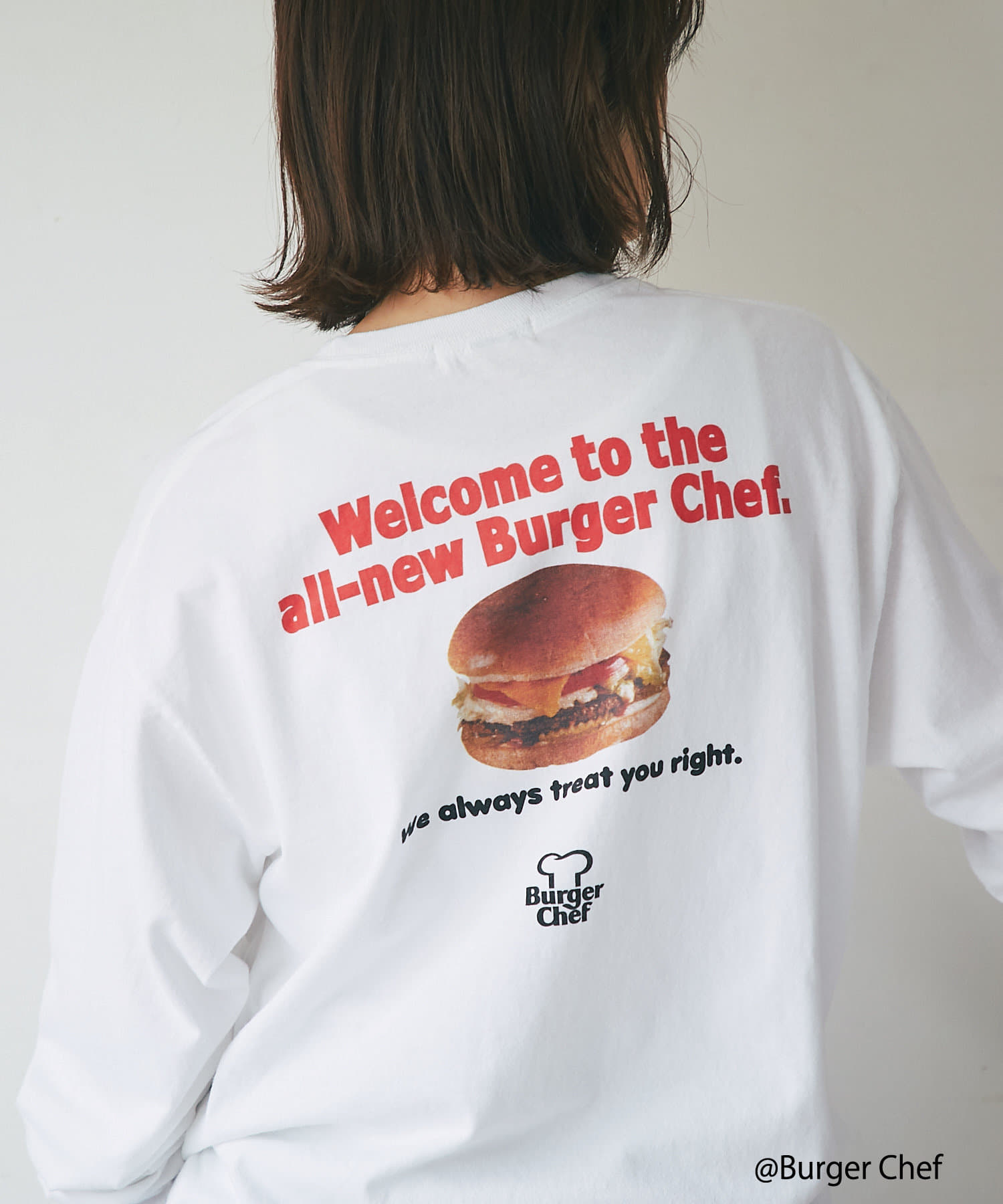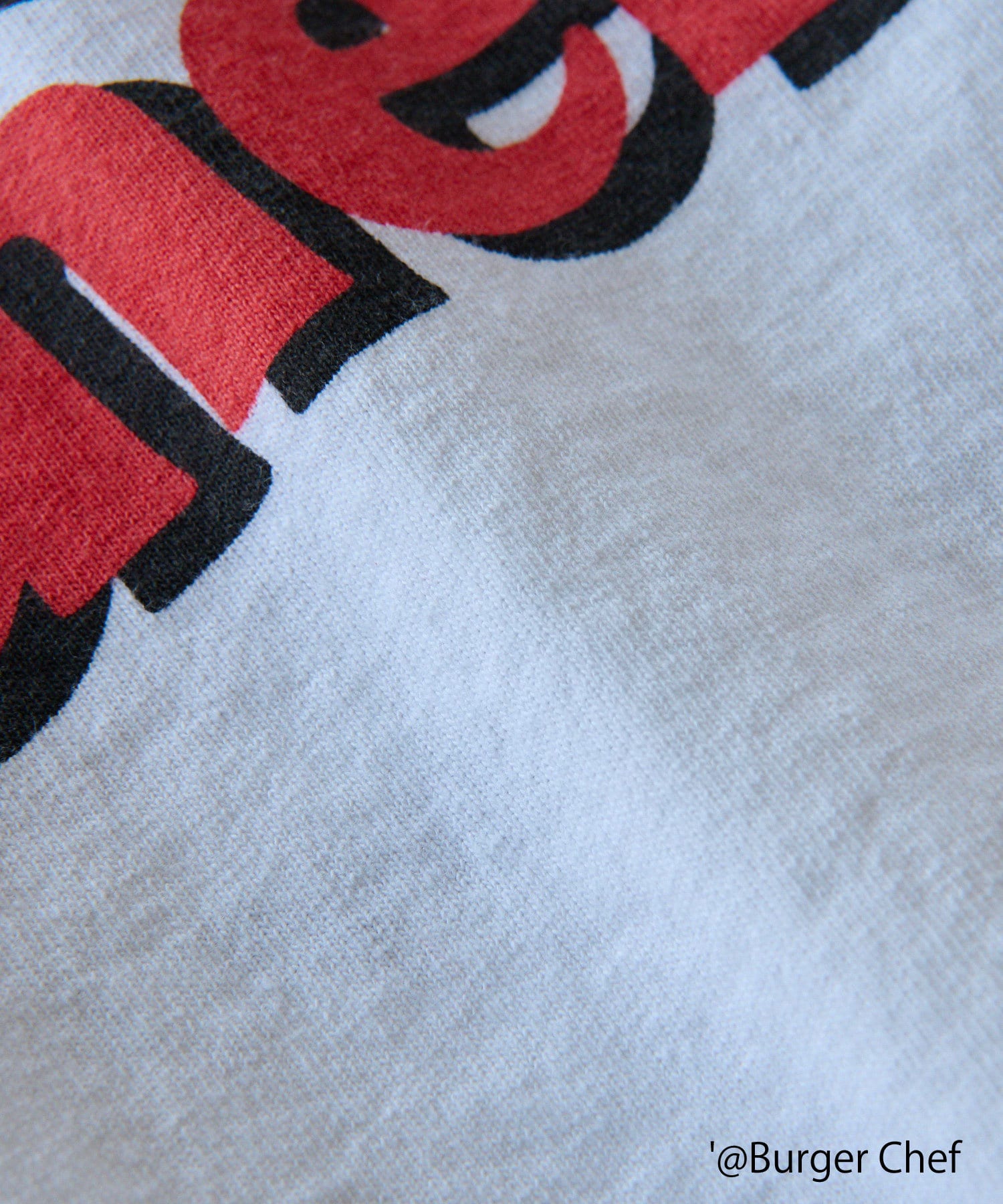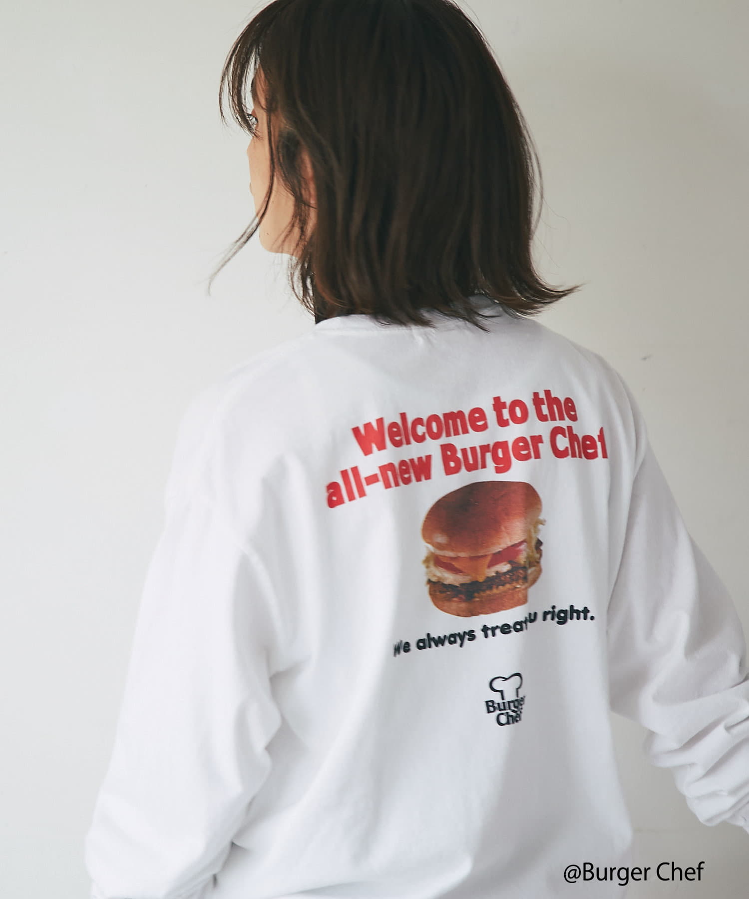 アメリカに実在していたBurger Chefというハンバーガー・ファストフードチェーン店のロゴやデザインを復刻したプリントTシリーズ。