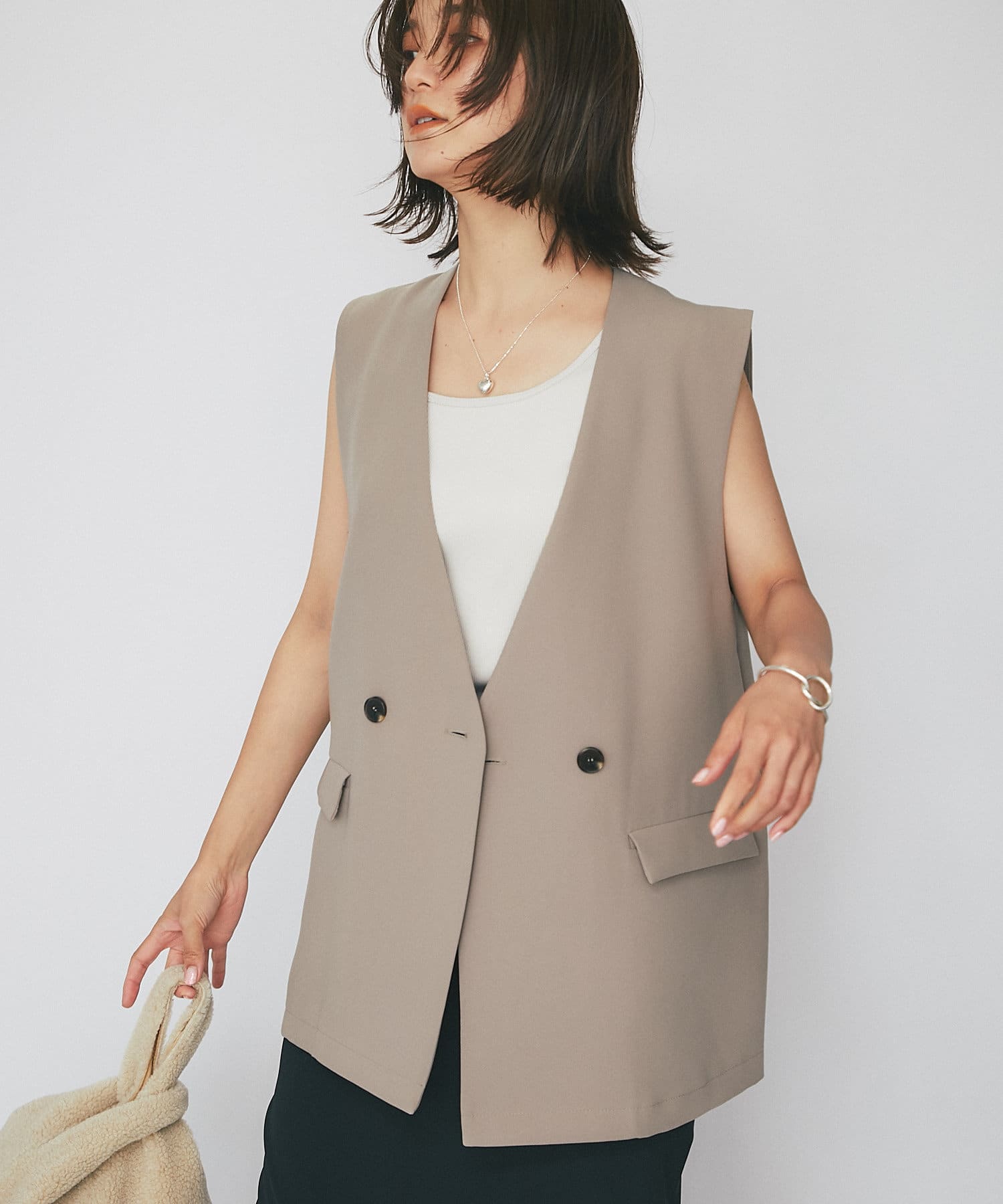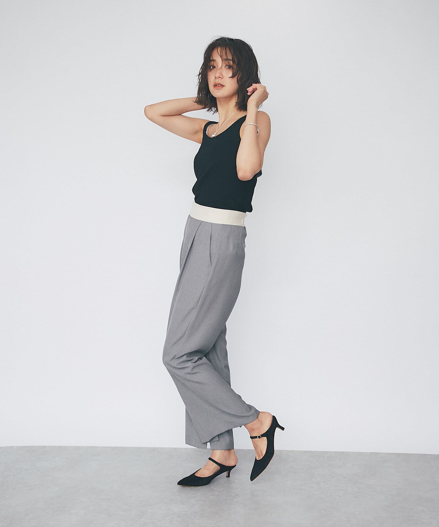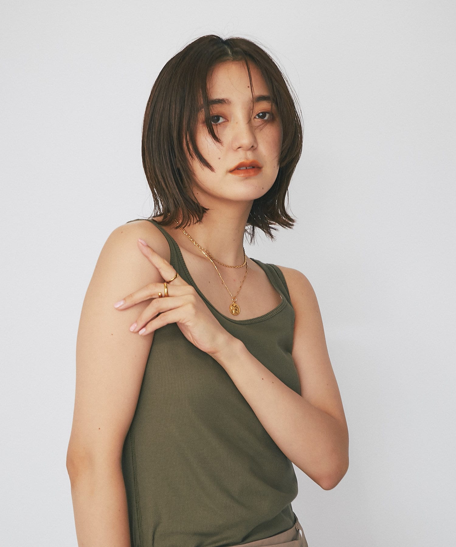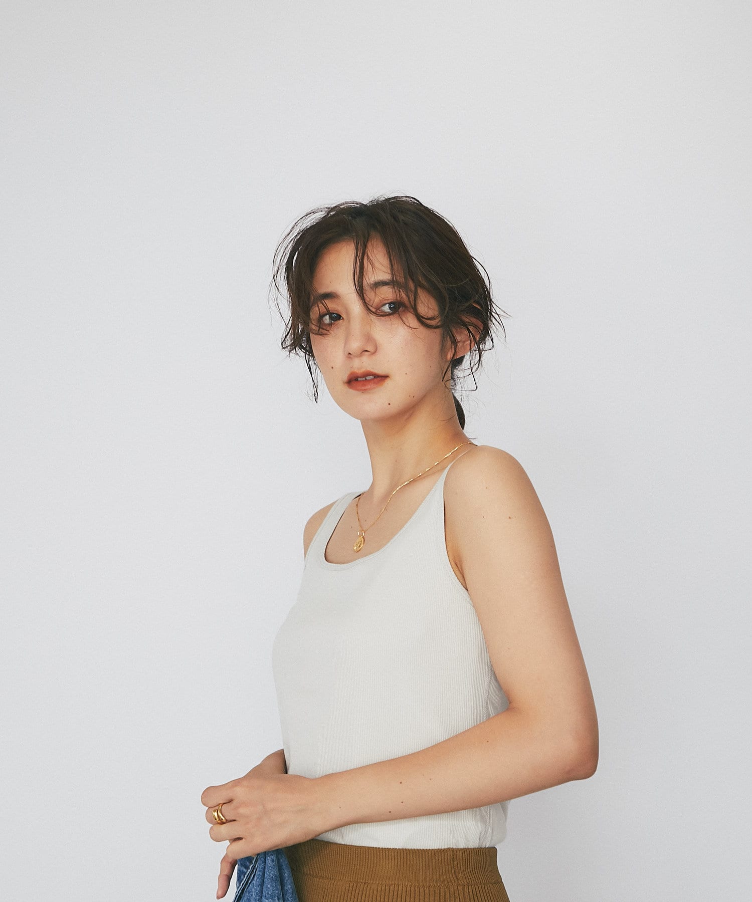 シャツやカーディガンと合わせて程よい肌見せと抜け感をプラスできるタンクトップ。ヘルシーな着こなしに相性抜群です。