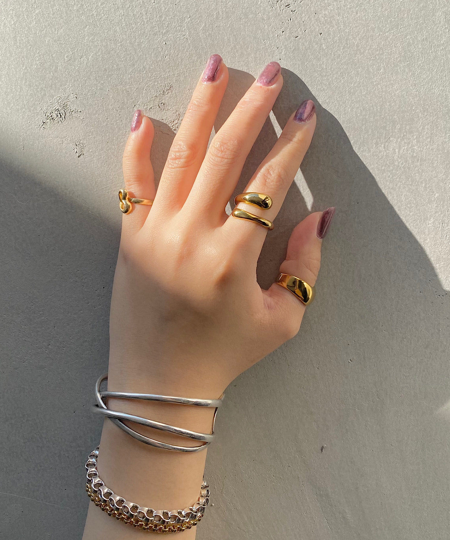 シンプルながらも立体感のあり、流れるようなラインとゴールドの光沢がさりげなく手元を華やかにします。