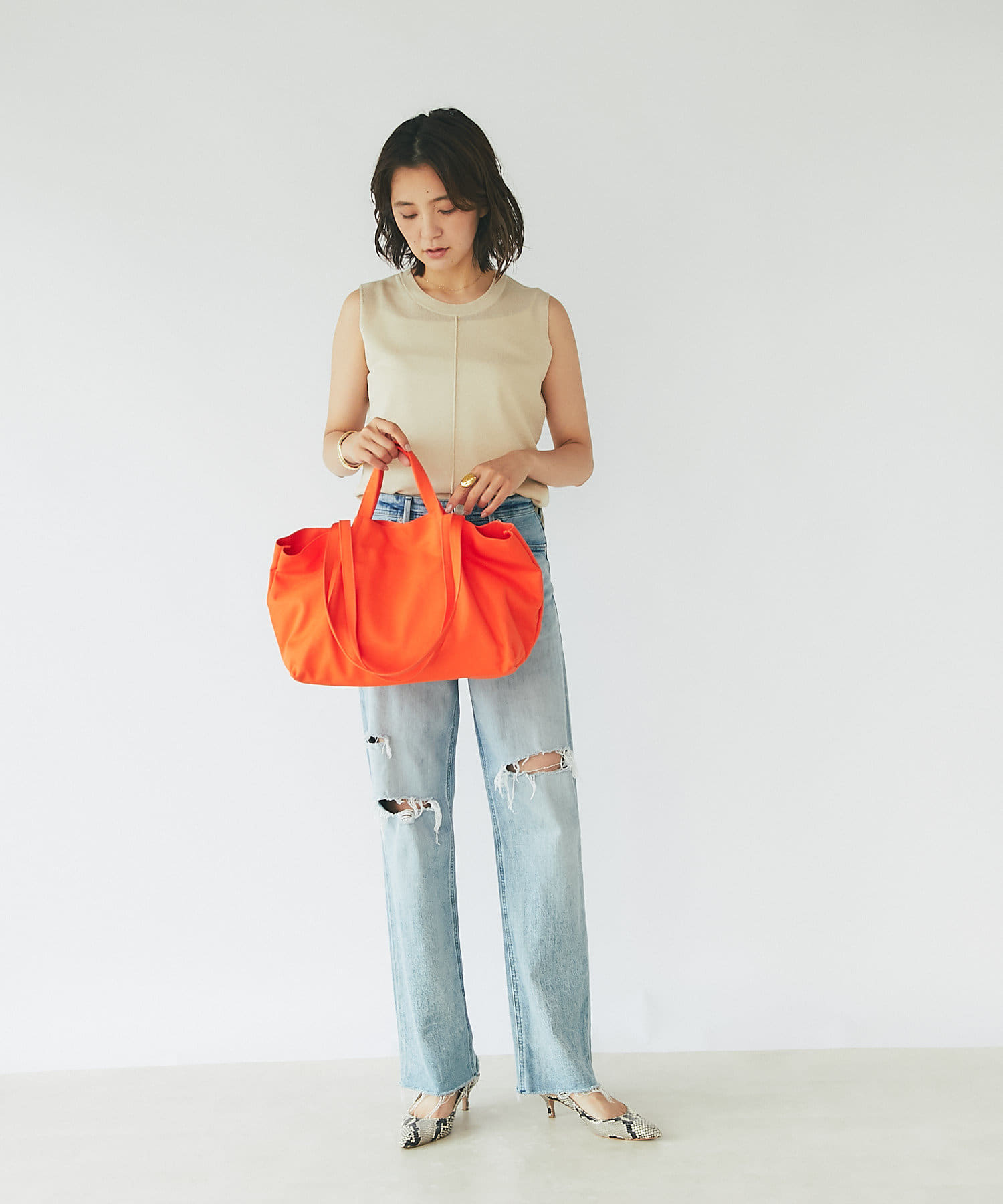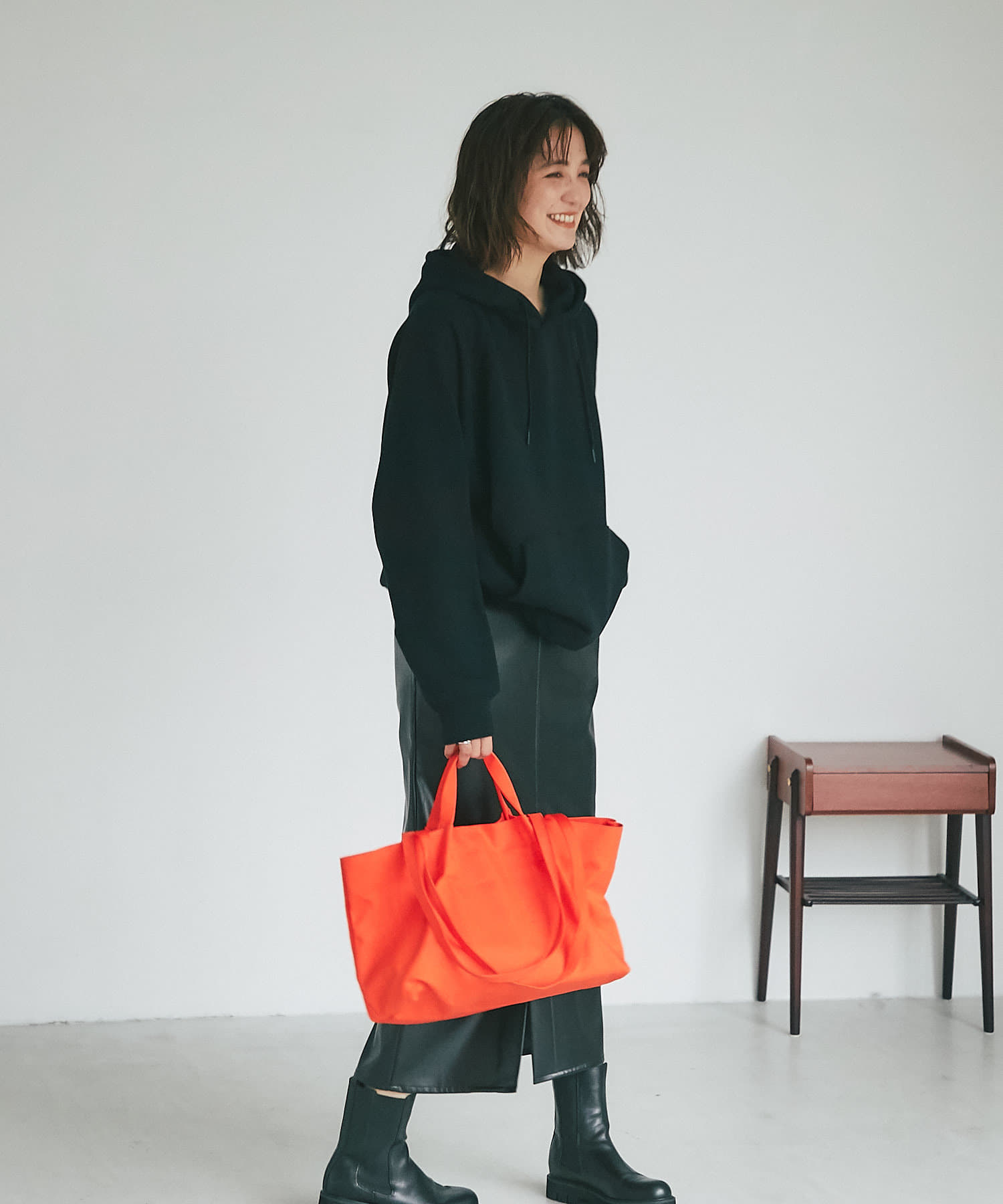 ビビットなオレンジカラーはコーデのアクセントとしてお持ちいただけます。