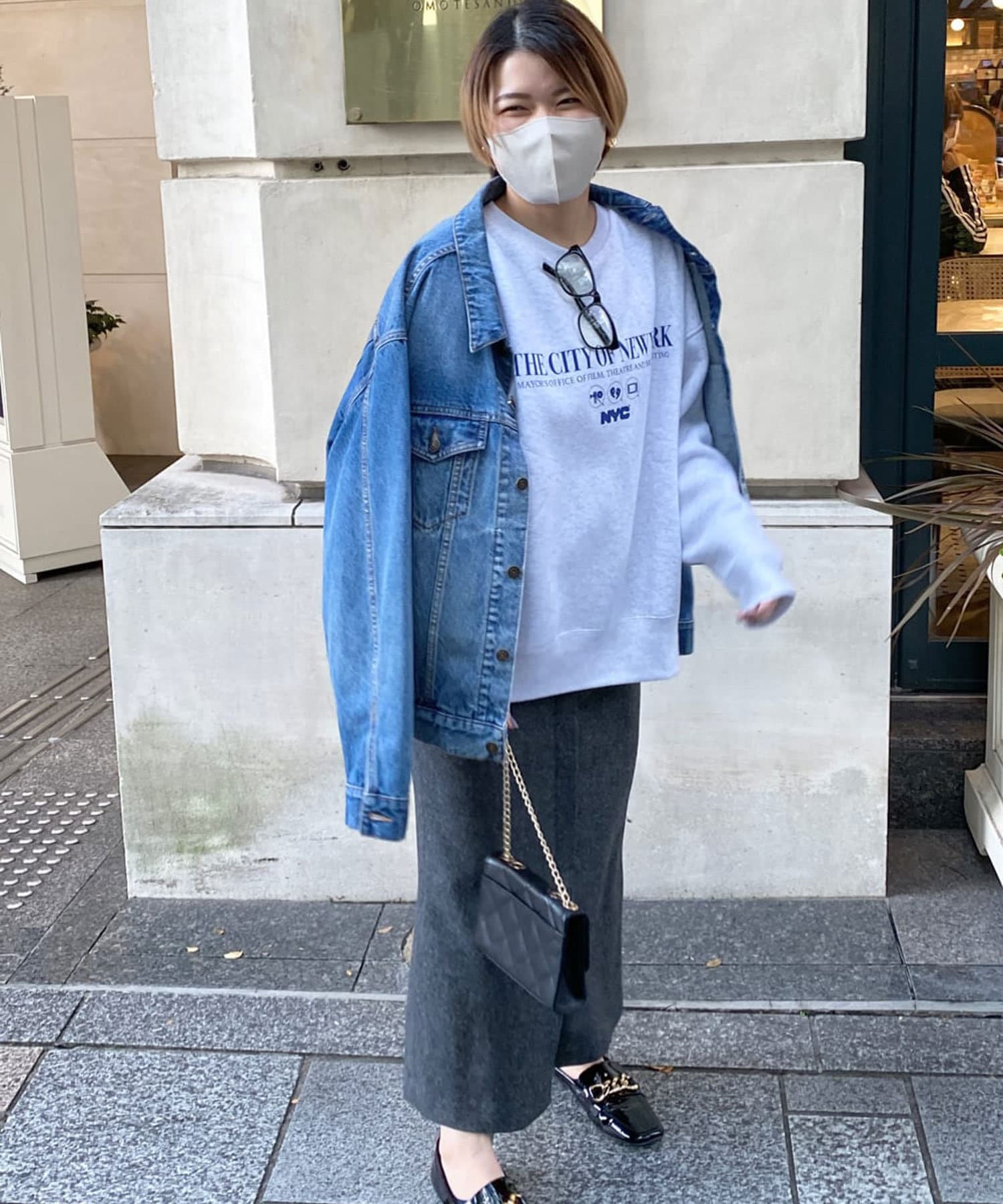ゆったりシルエットなのでスリムなボトム合わせがおすすめです!