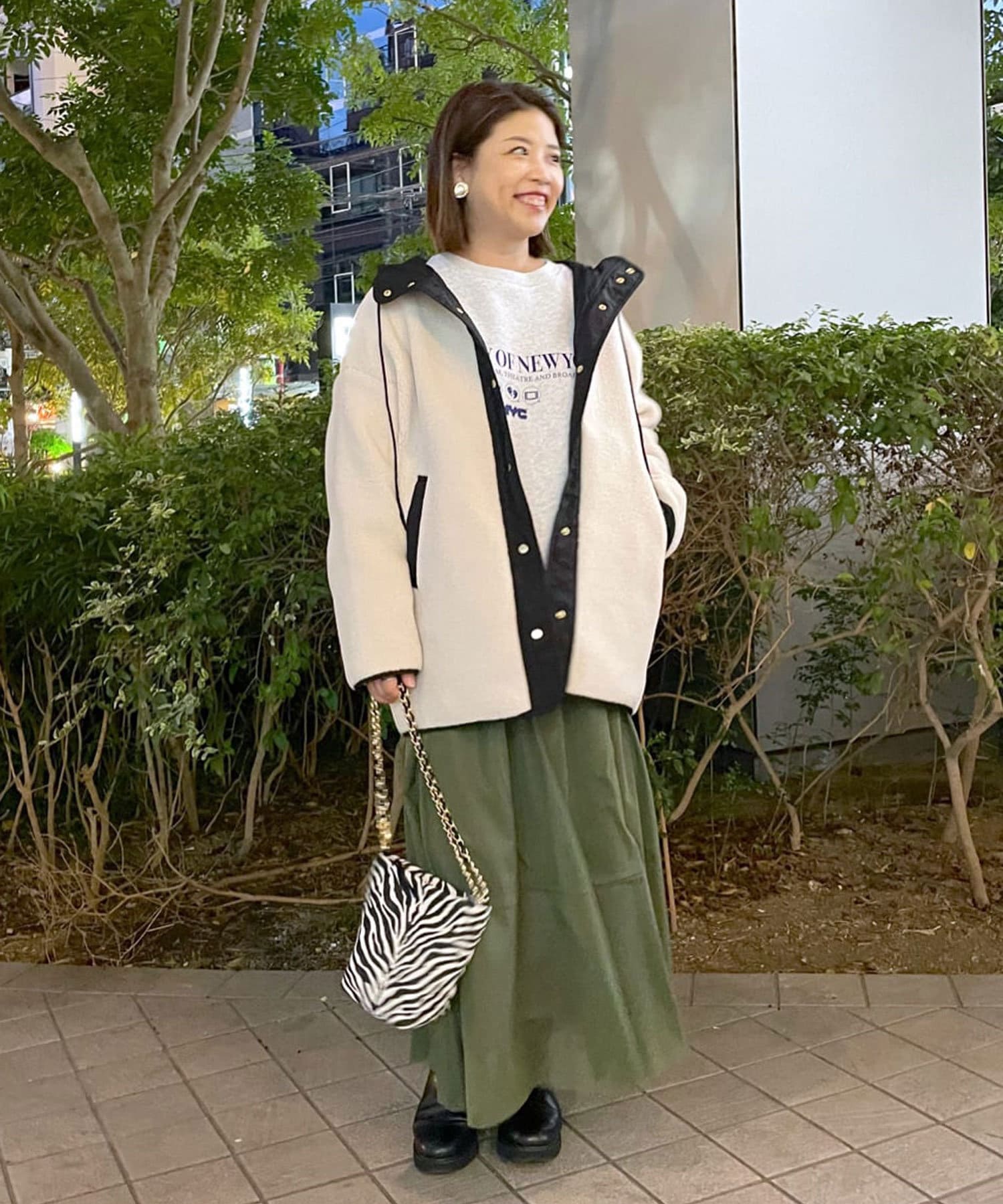 丸みのあるフォルムとたっぷりしたサイズ感が魅力の今っぽさの詰まった1着です。
