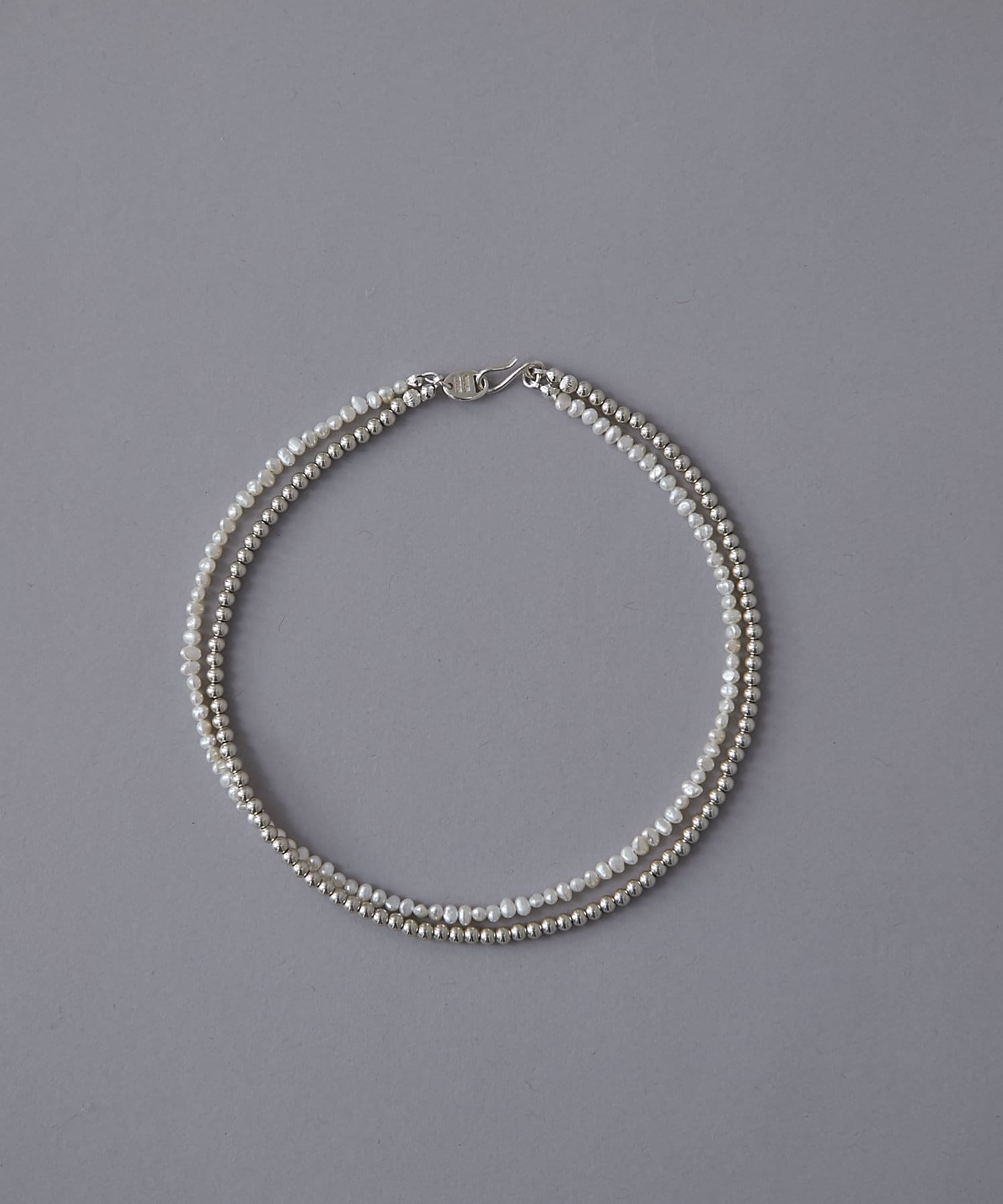 リヴドロワ別注!4mmシルバービーズとベビーパールの2連タイプのネックレス。