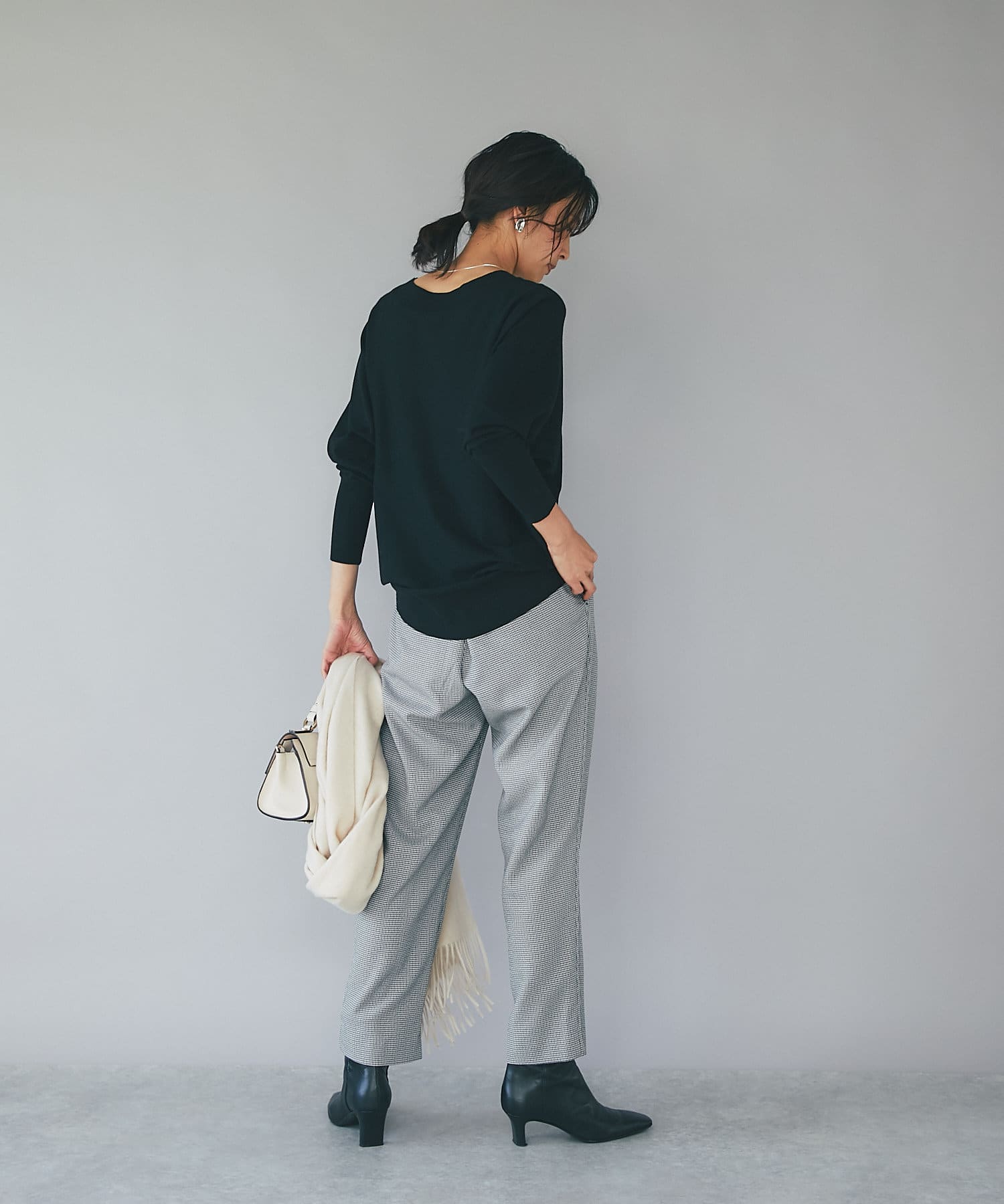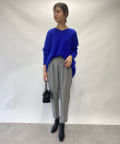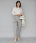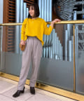 ⇒トップスはインせずに出した状態でもきれいに着ていただけます。インすると重心が上に上がり、シルエットのきれいさがより映えるコーディネートに。脚長効果も出るのでお好みで着方を変えていただくのがおすすめです。