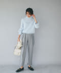 スッキリした印象のパンツなので様々なアイテムに合わせやすく着回し力の高いところも魅力的。