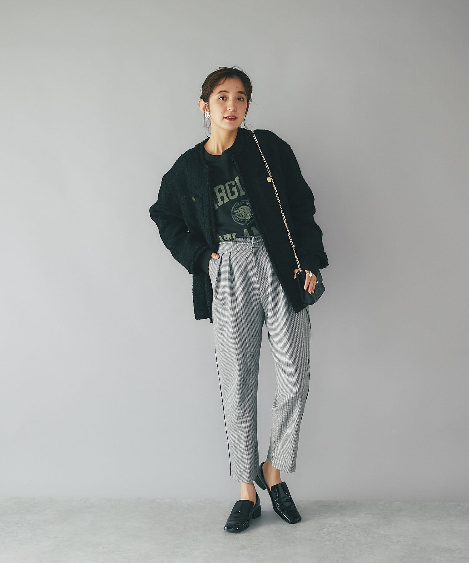 クラシックなチドリチェックがスタイリングを新鮮にアップデートしてくれます。