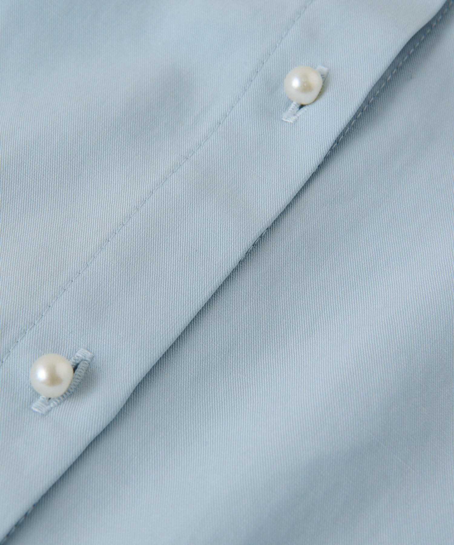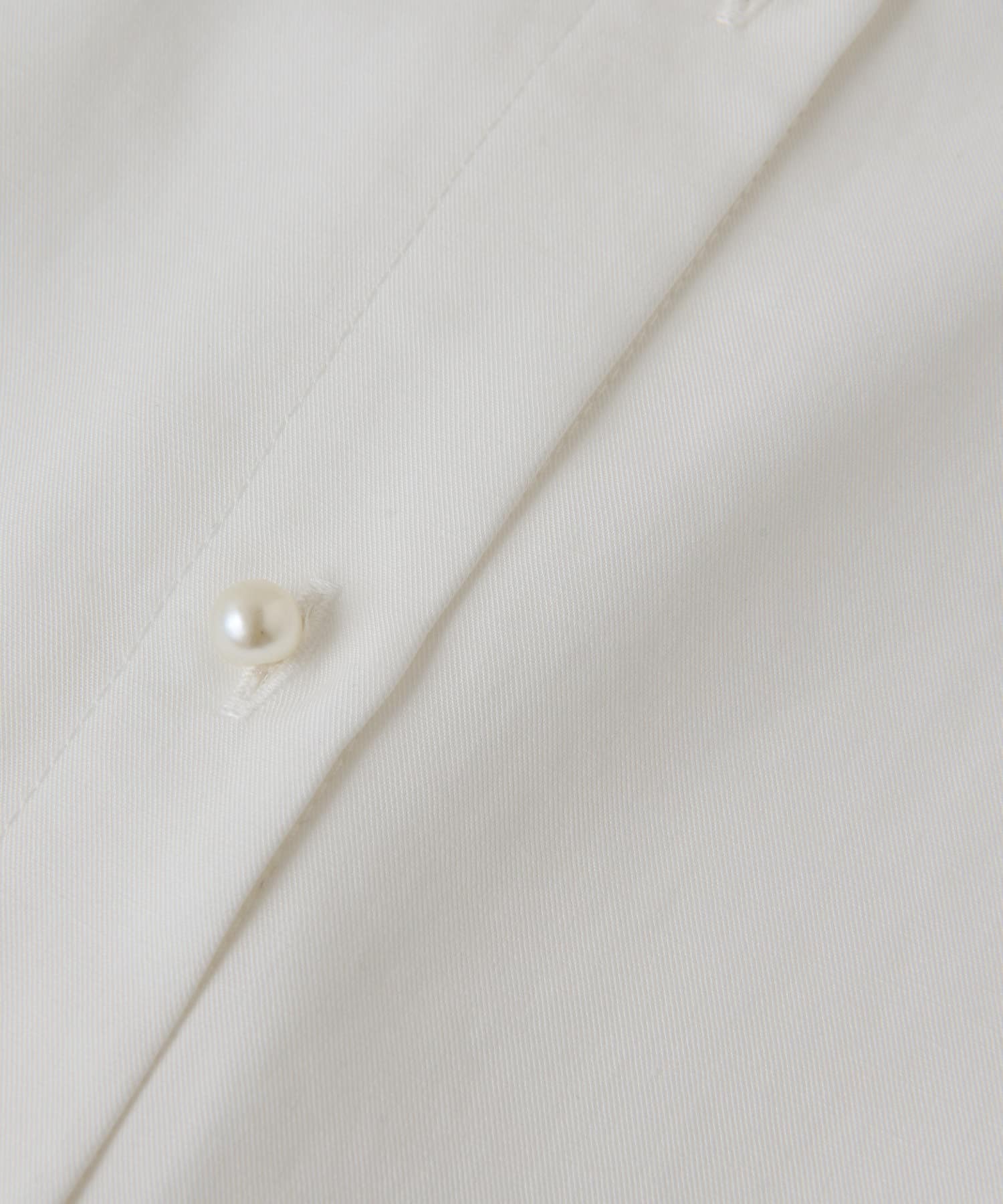 【スタイリングのアクセントになるパール付き】パールボタンシャツ