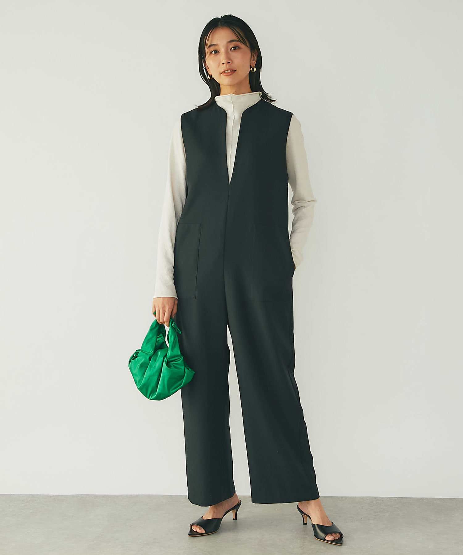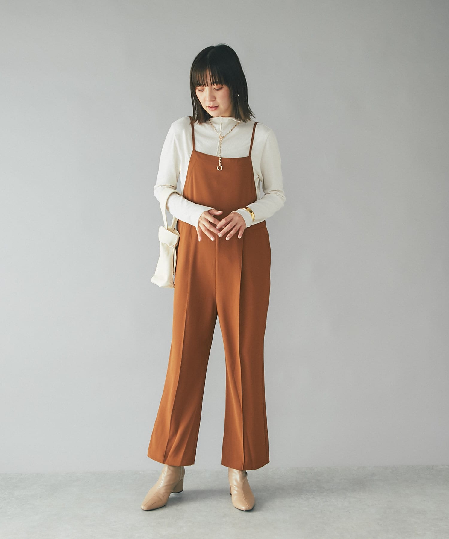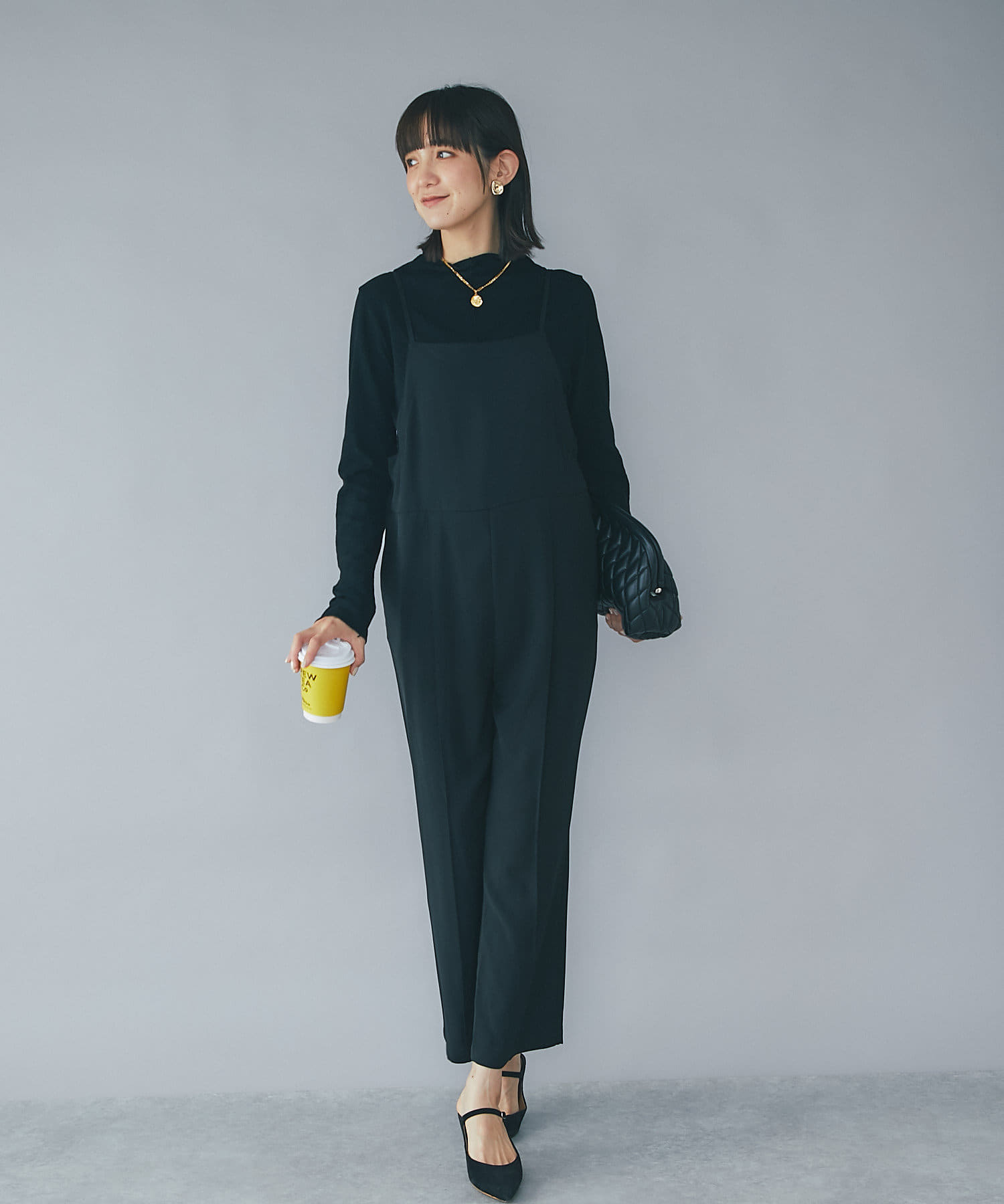 肌ばなれが良く、透けにくい素材感と程よく立ち上がったハイネックでレイヤードにピッタリなアイテム。