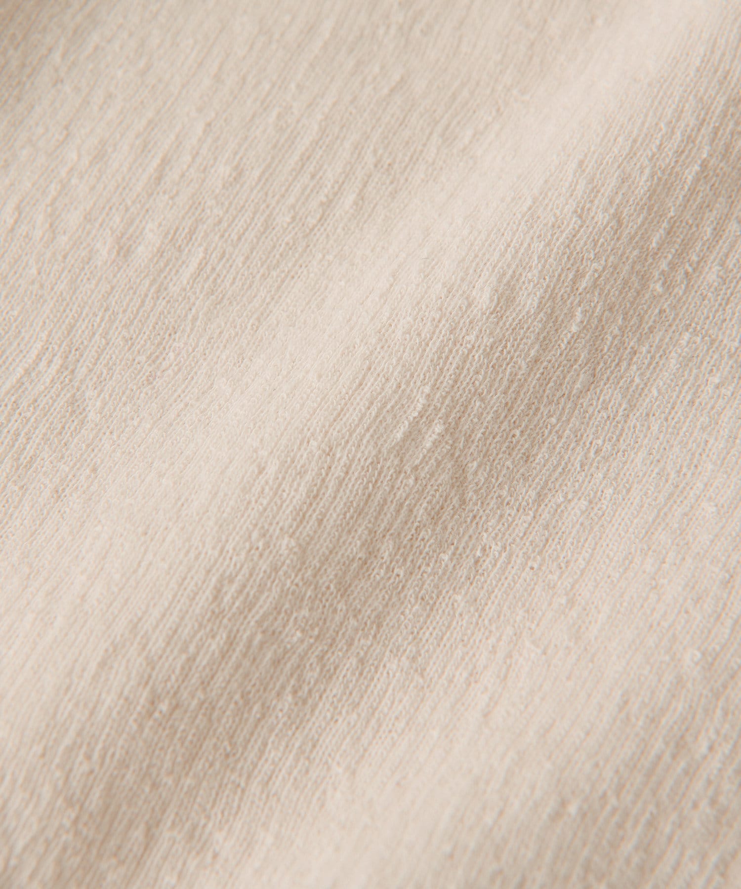 細かなクレープ状の表情のある素材を使用した1枚でも様になるデザインなのも魅力的。