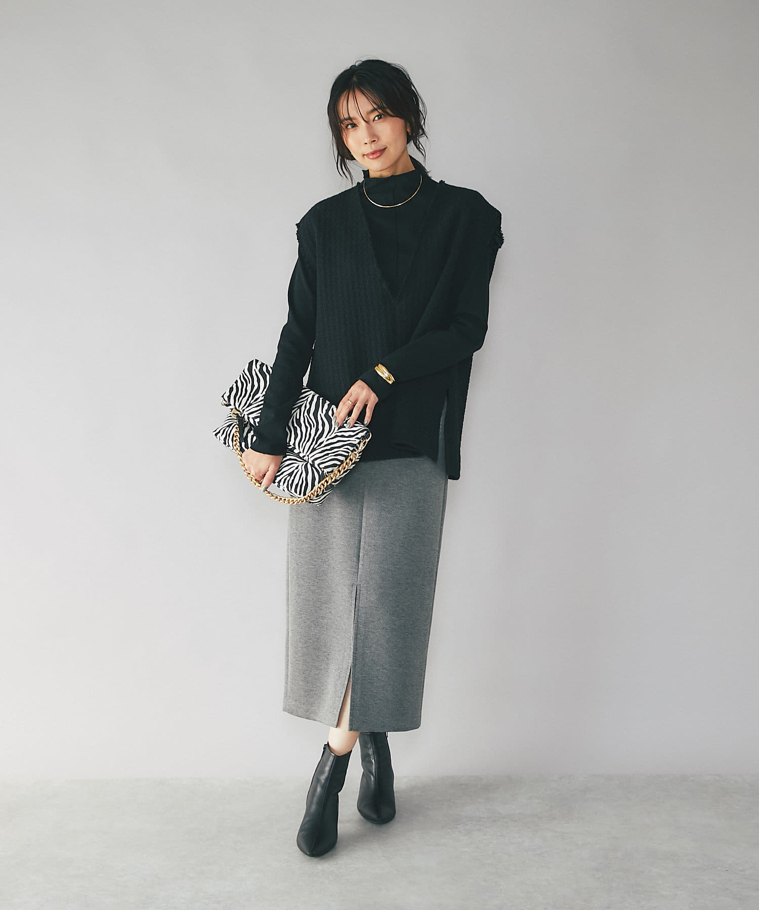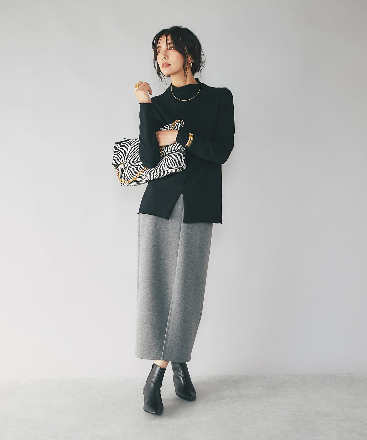 程よいハイネックでコーディネートの鮮度をグッと引き上げてくれます。