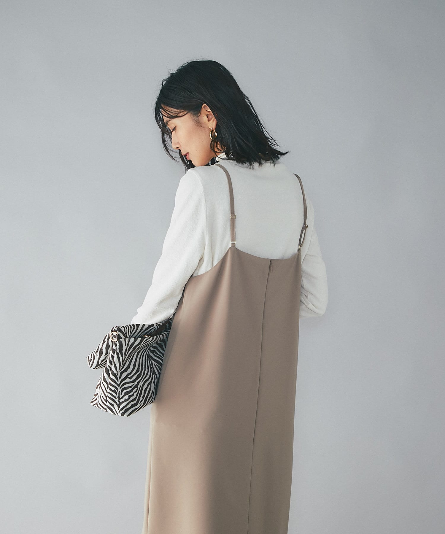 シワになりにくくシーズンレスな生地感で、ホームクリーニングが可能な利便性の高いキャミワンピース。