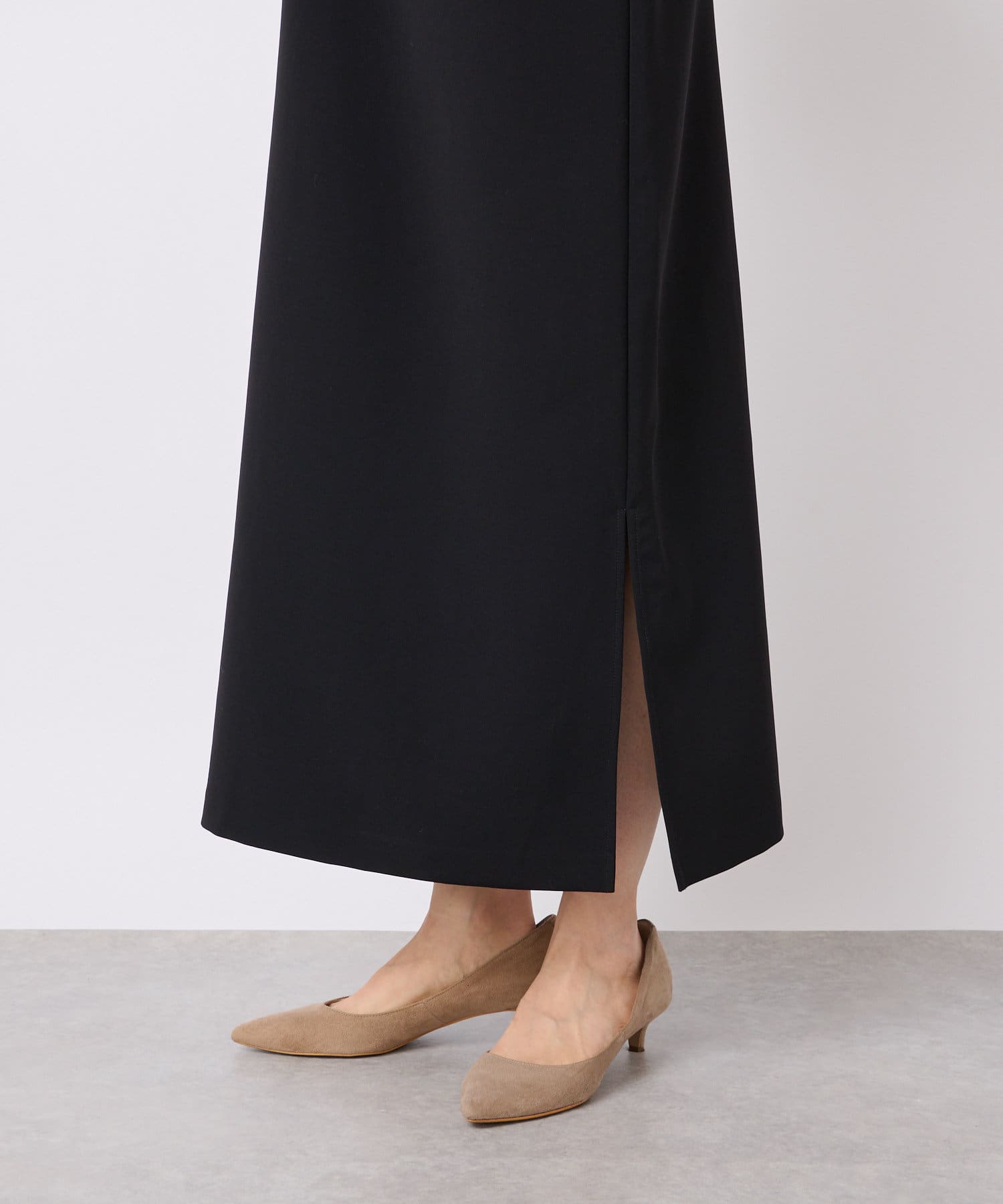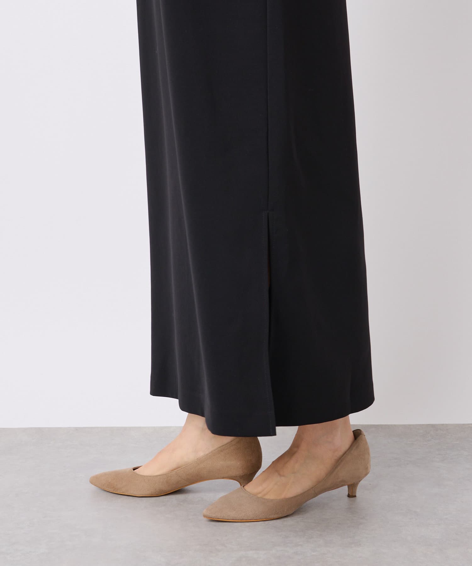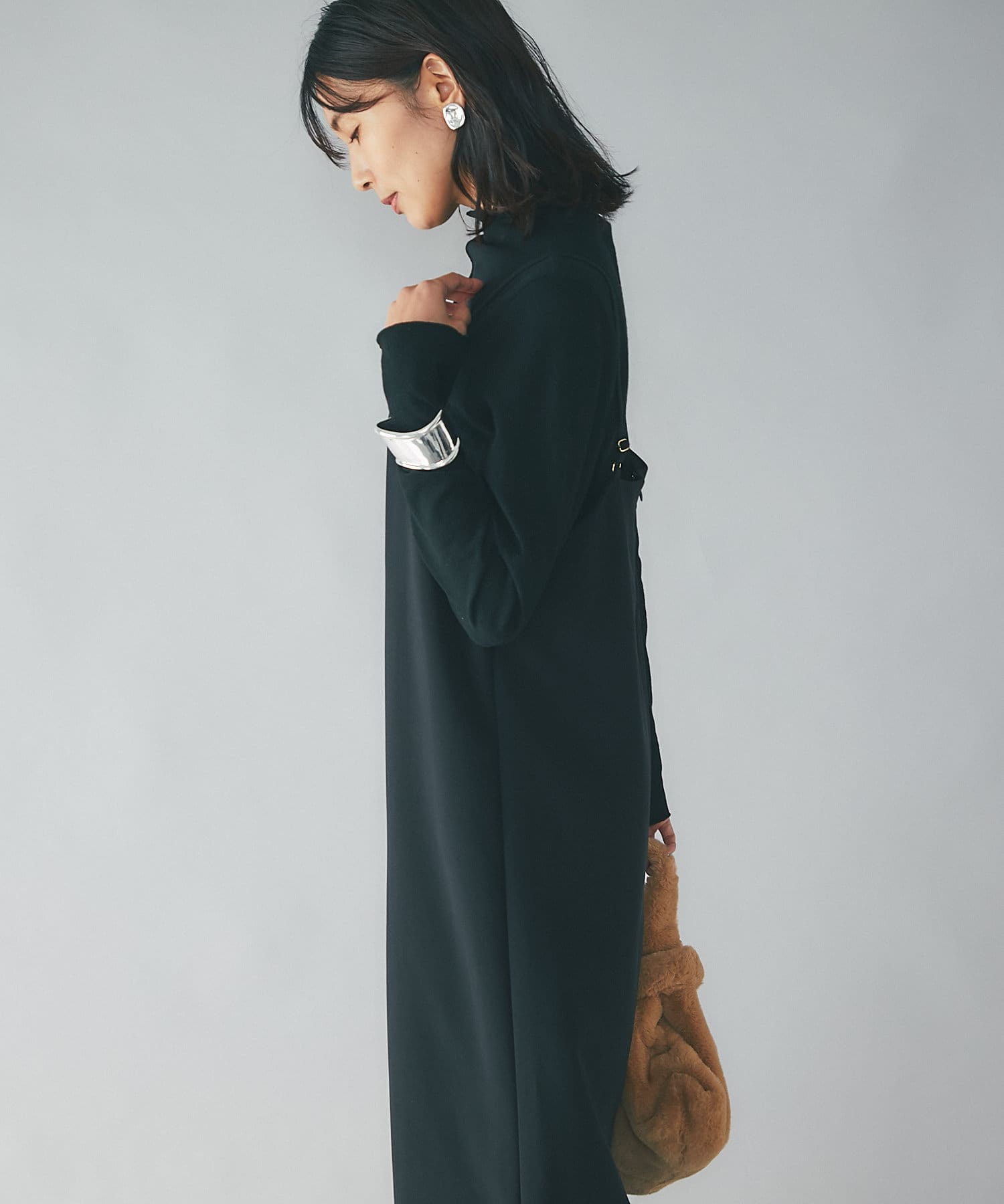センターバックはファスナーあきで着脱がしやすくなっています。左脇にはスリットを施し、大人の抜け感をプラスしました。
