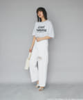 バックプリントが目を惹く一枚のため、シアーアイテムのインナーとしても◎