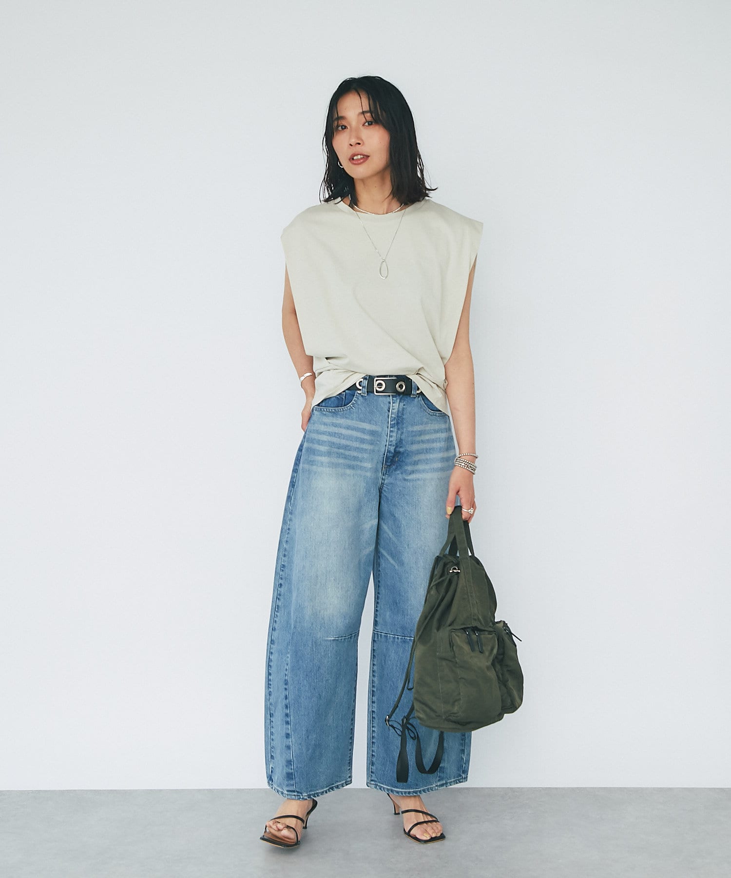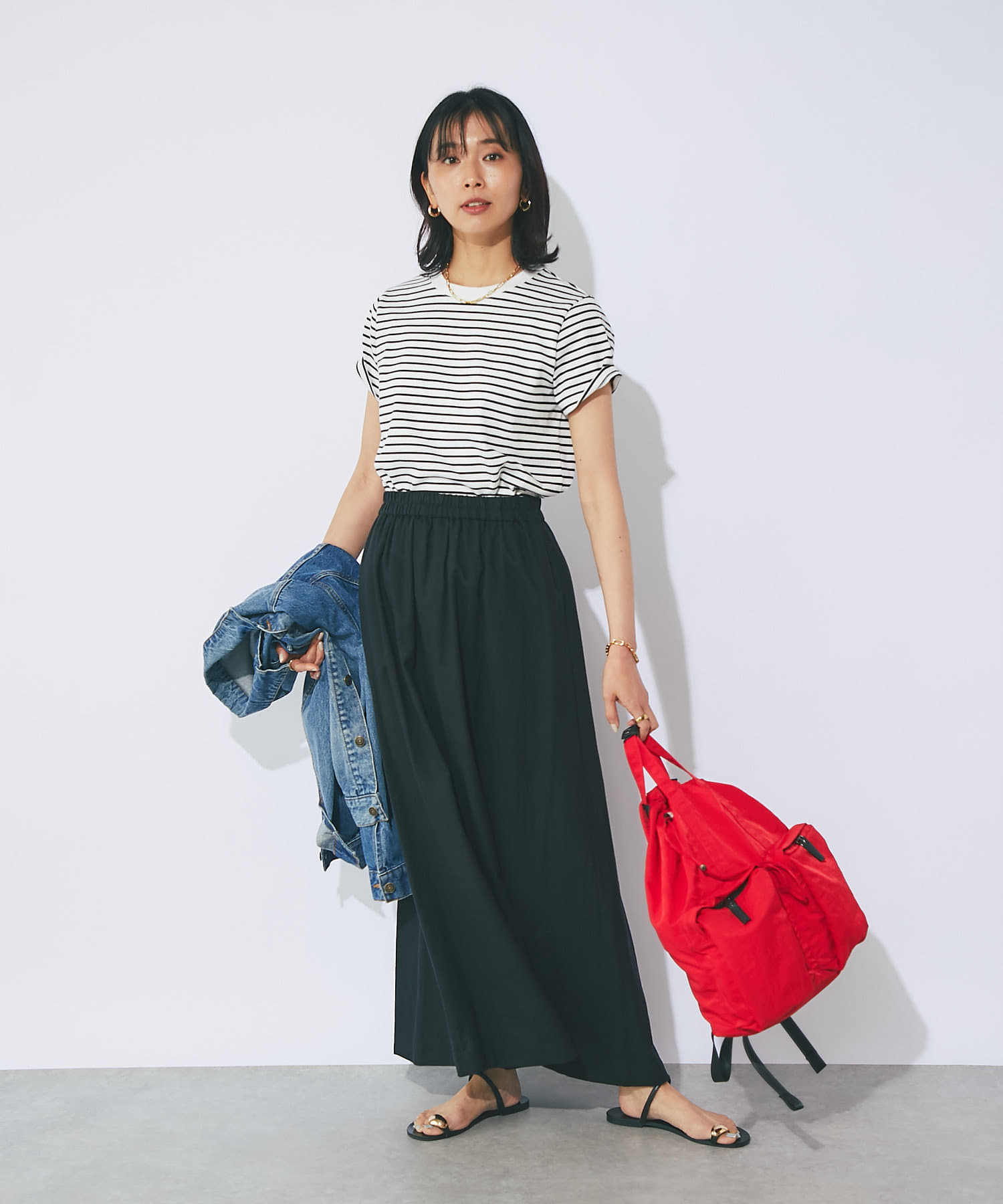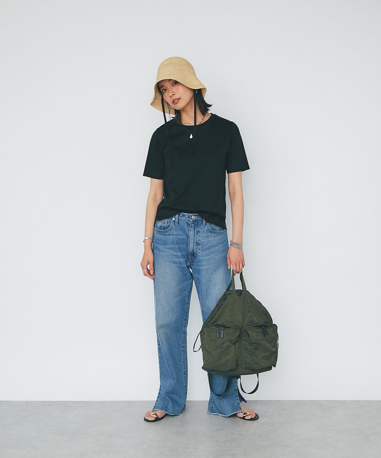 また、上部の持ち手でトート持ちにするのもオススメ!その際は巾着を絞らずに、持って頂くとよりこなれ感が出て◎