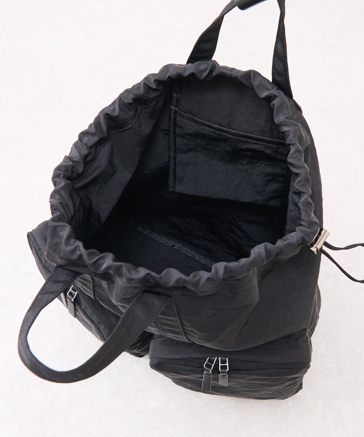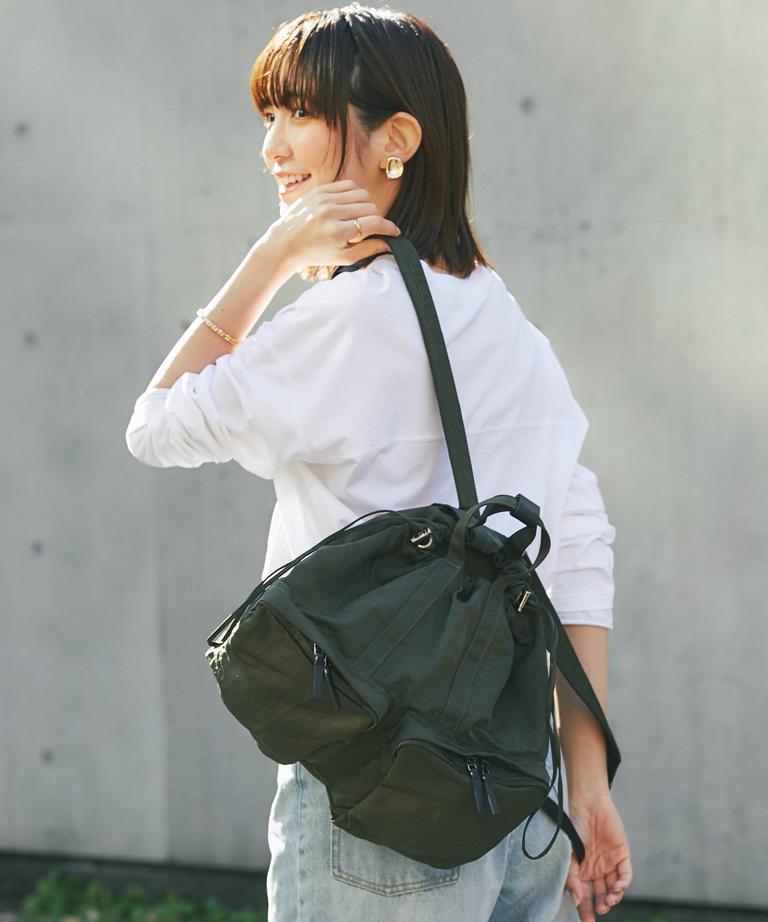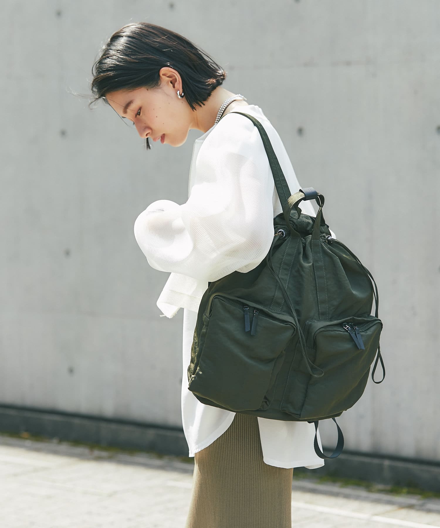 スタイリングに合わせて、持ち方もアレンジできる大人のナップリュックとなっております。