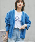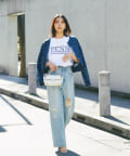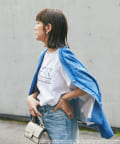 シンプルなグラフィックのTシャツは、1枚で着ても、他のアイテムと重ねて着ても決まる、着まわし易さが魅力。