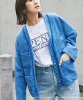 ⇒袖周りがややゆったりとしたサイズ感になっているため、腕を上げた時などにインナーが覗く可能性がございます。袖丈自体は肘上あたりまでとやや長めのため、二の腕のカバーはしっかりとしてくれるアイテムです。