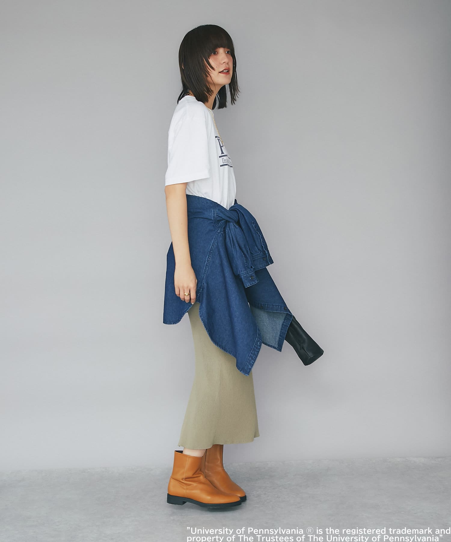 シンプルなデザインで合わせるものを選ばず、トレンドのジレやベストを合わせたレイヤードスタイルや、タイトスカートを合わせた大人カジュアルなスタイルがおすすめです。