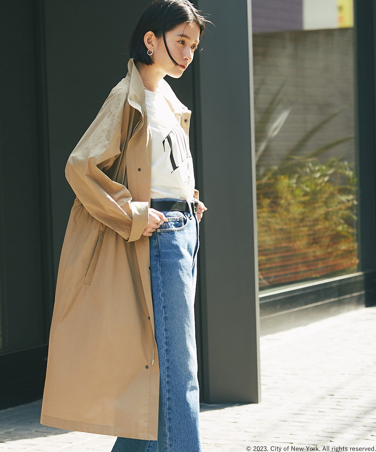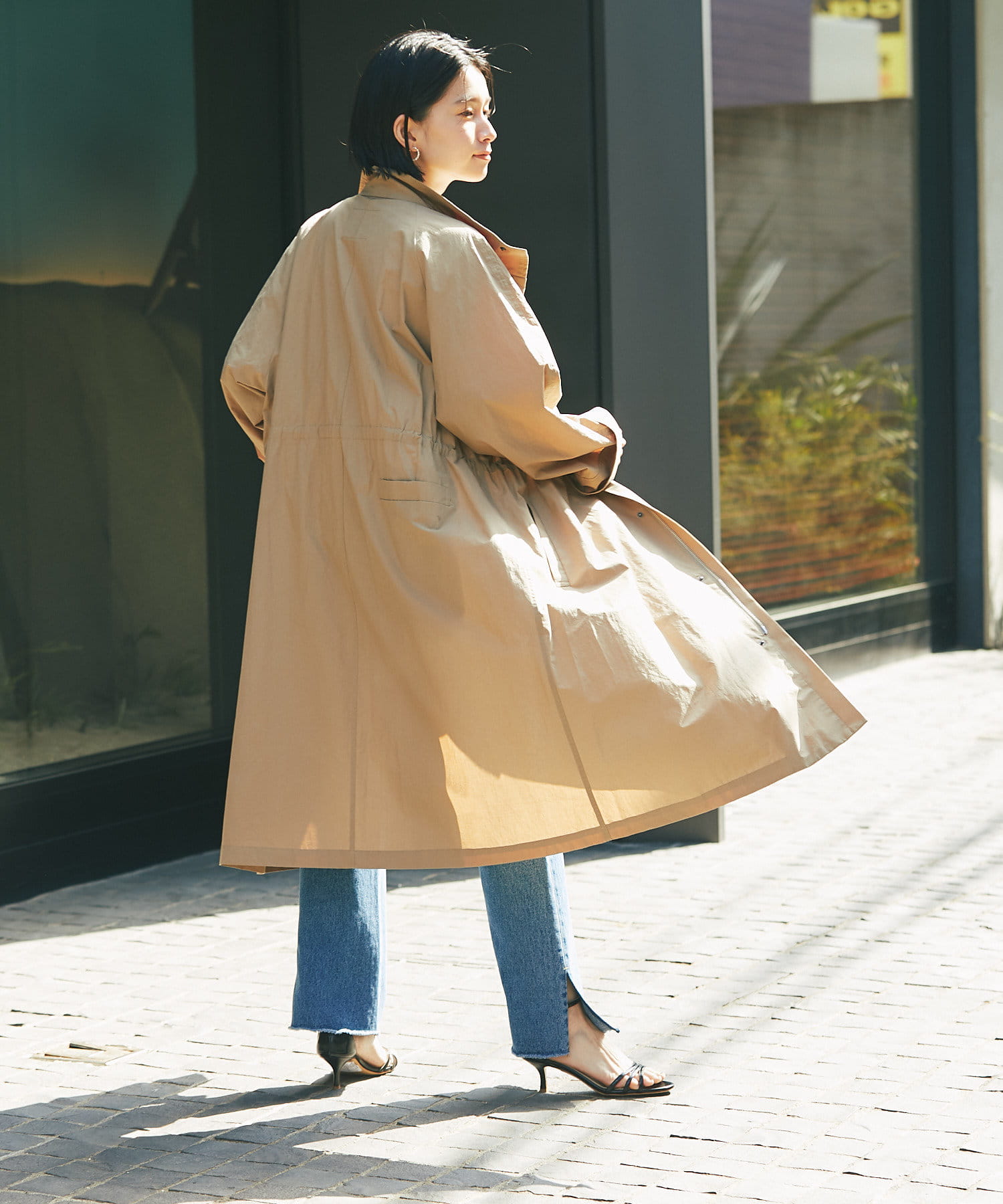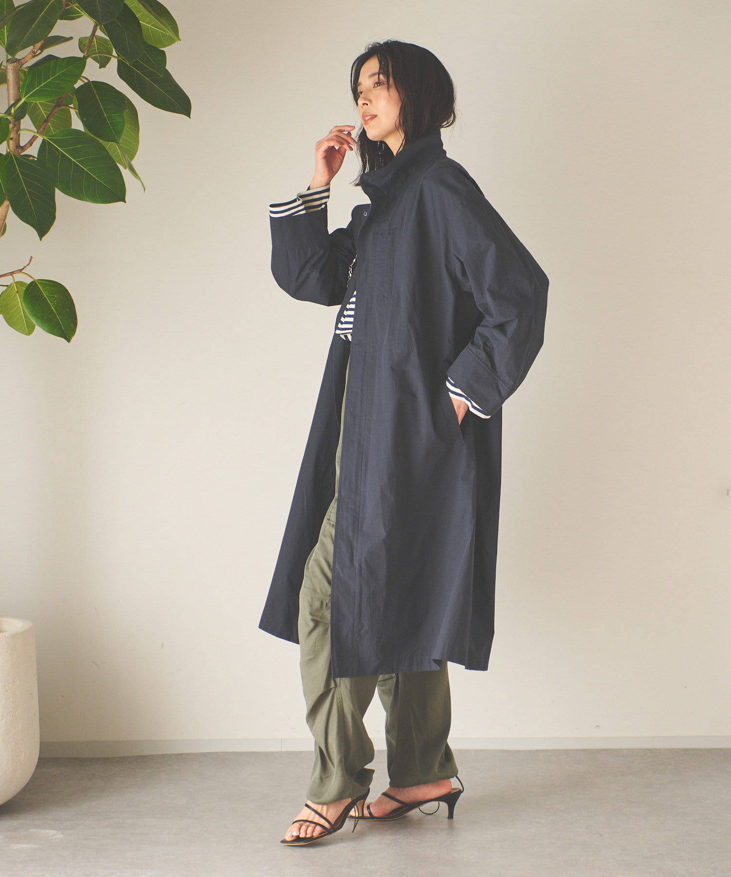 モッズコートのイメージのままデニムやスウェット等のカジュアルなアイテムを合わせていただくのはもちろん、フレアスカート等のフェミニンなアイテムも程よくカジュアルダウンしてくれる日常使いしやすいコートです。
