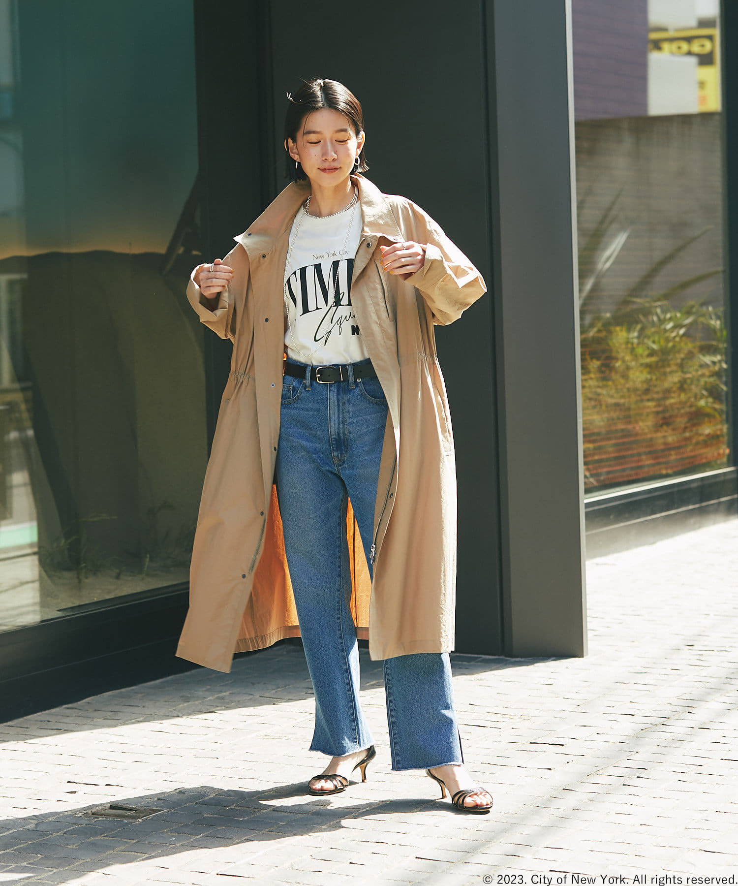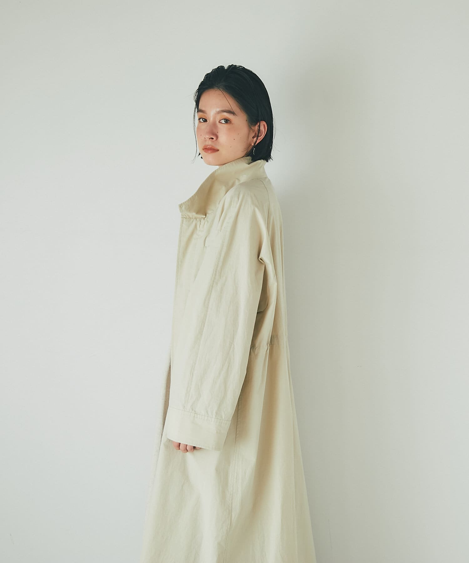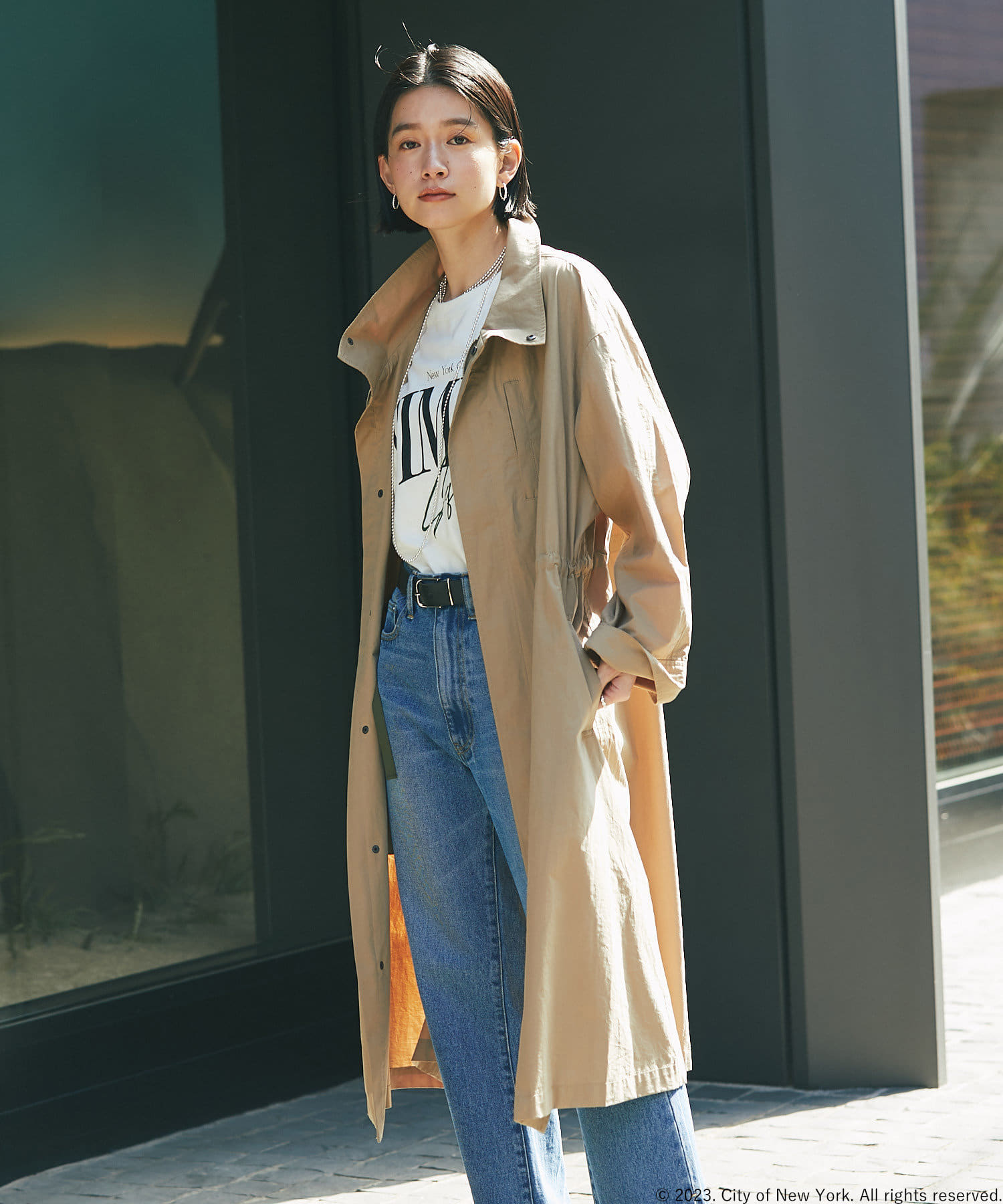 モッズコートのイメージのままデニムやスウェット等のカジュアルなアイテムを合わせていただくのはもちろん、フレアスカート等のフェミニンなアイテムも程よくカジュアルダウンしてくれる日常使いしやすいコートです。