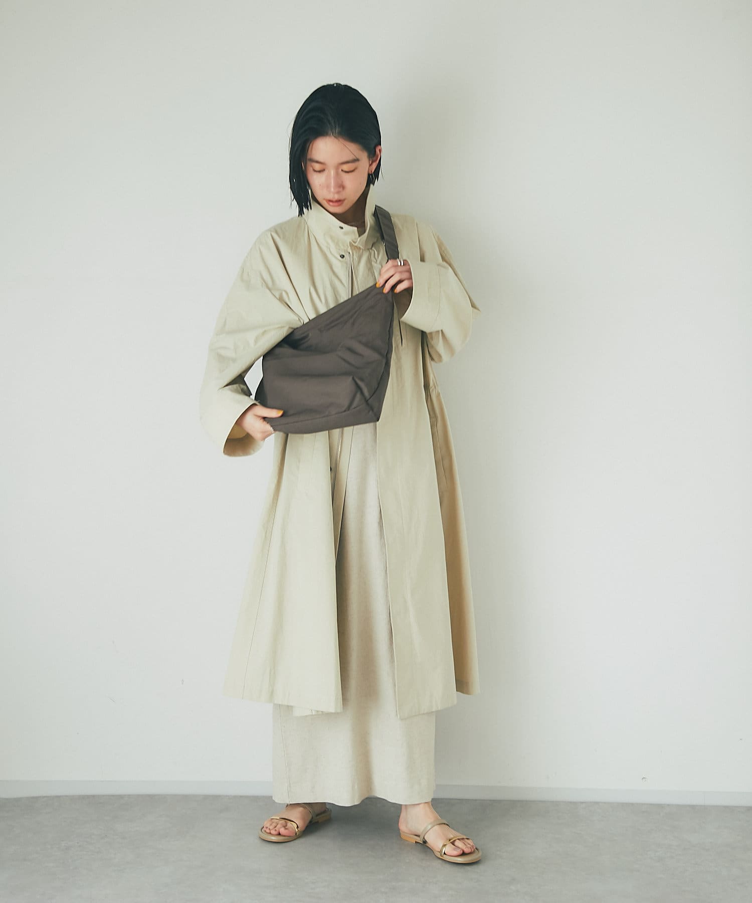 ゆったりとしたサイズ感のため、肌寒い時期には中にニットを着込んでもごわつかずにお召いただけます。
