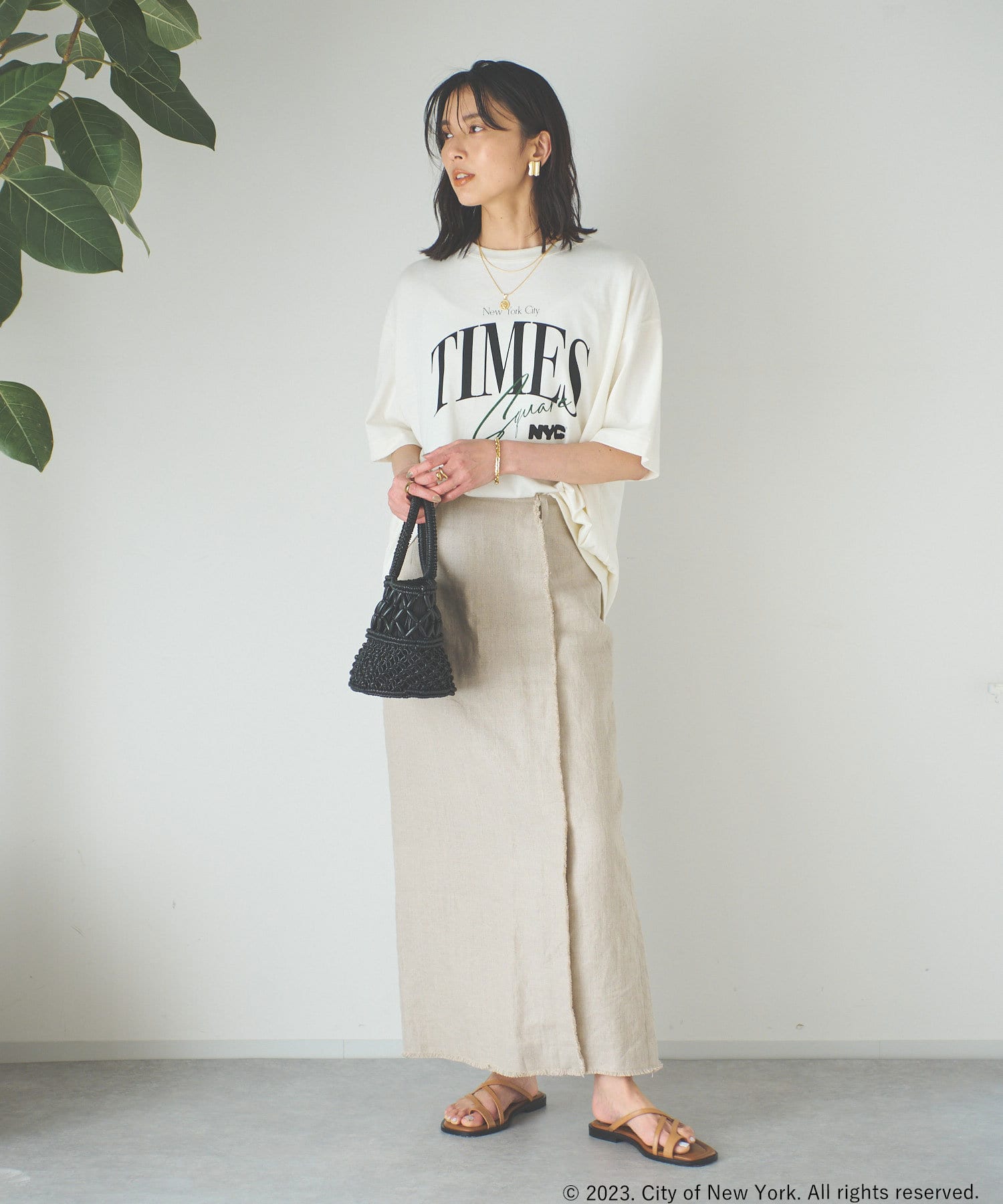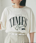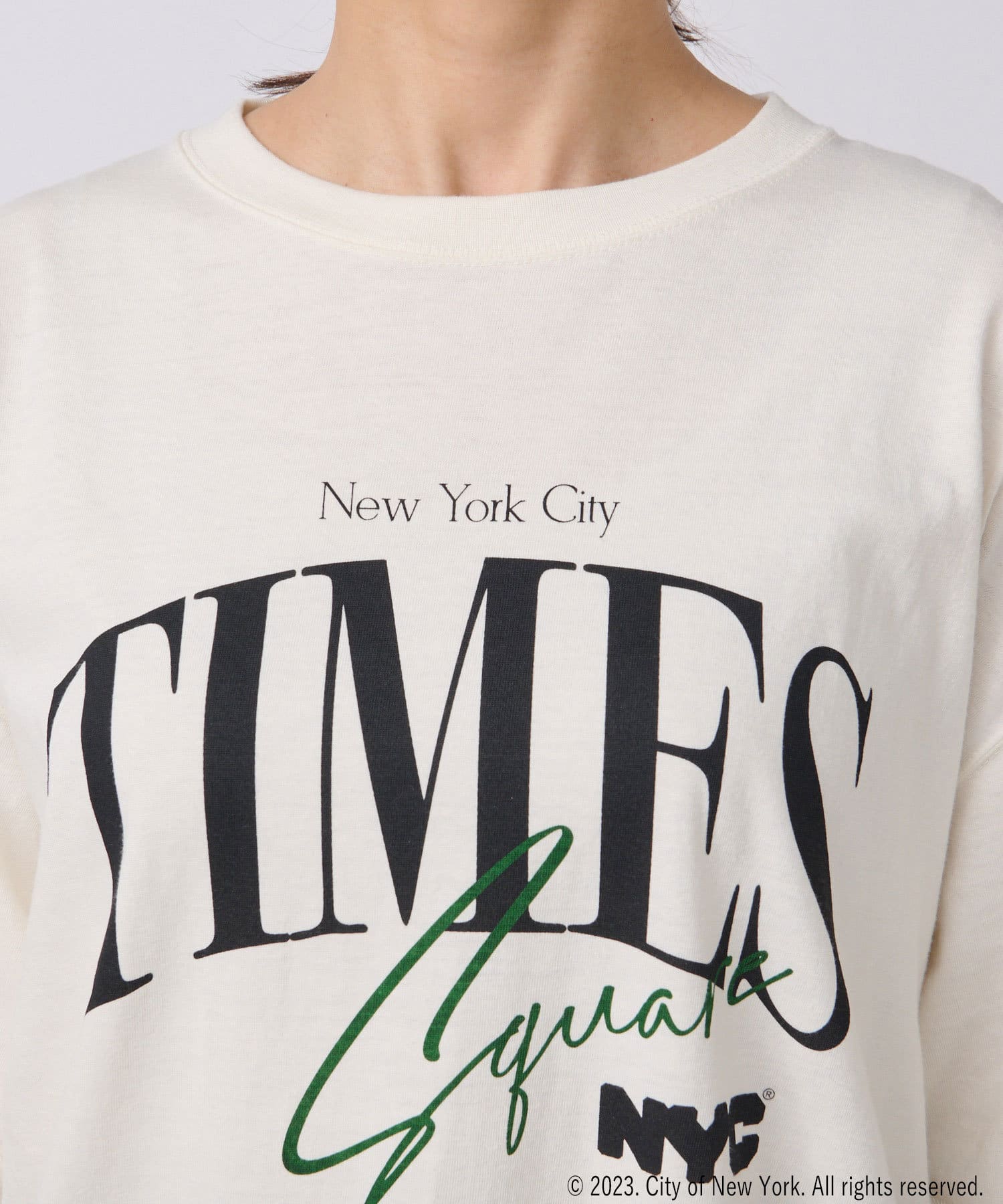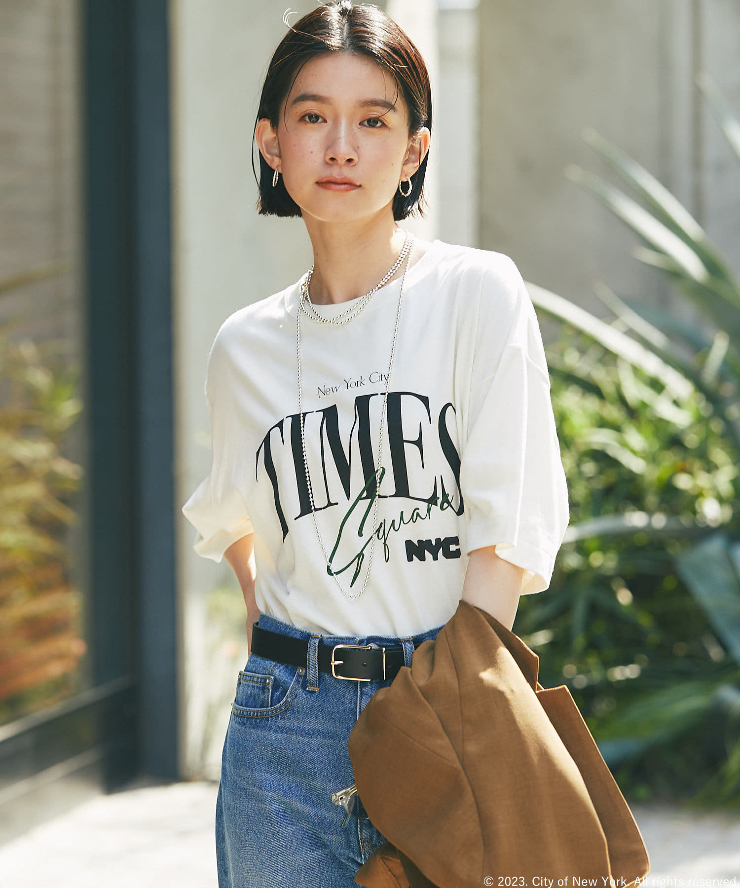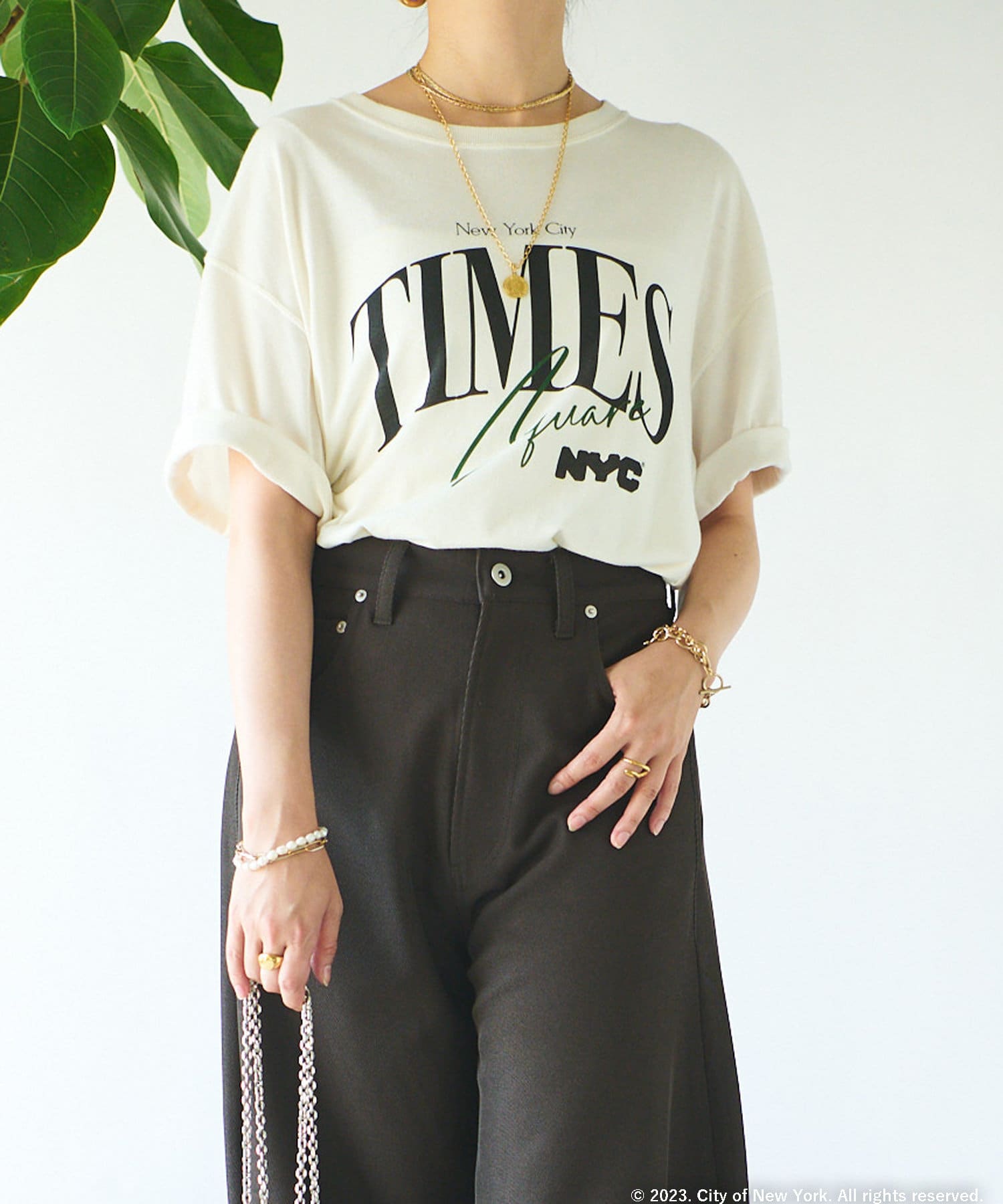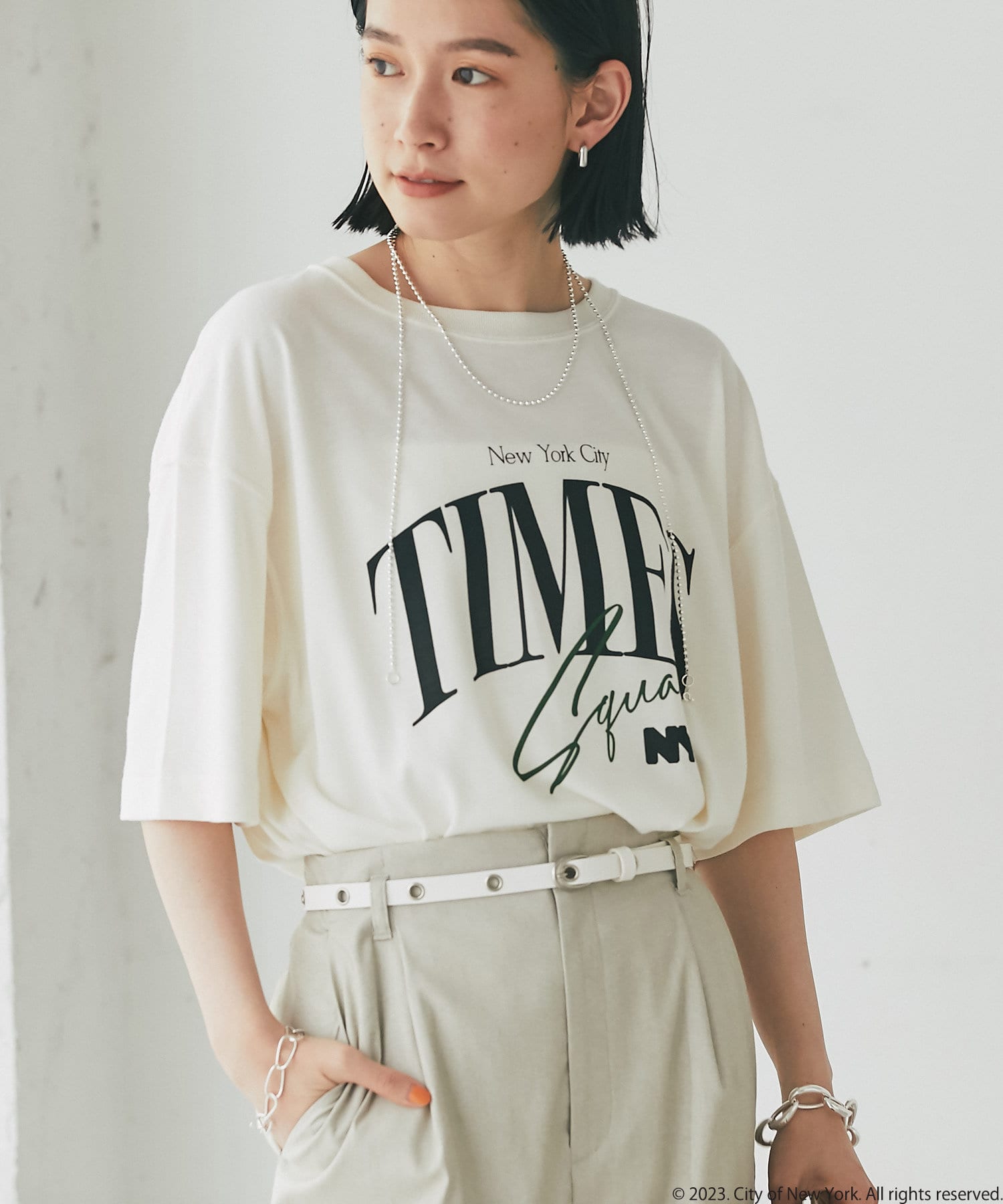 適度な抜け感のあるフェミニンな仕上がりの1枚。TIMES SQUAREのタイポグラフィーロゴも洗練された印象です。