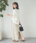 女性らしさをプラスするタイトスカートや細身のパンツと合わせていただくと、より落ち着いたコーディネートで着用いただけます。