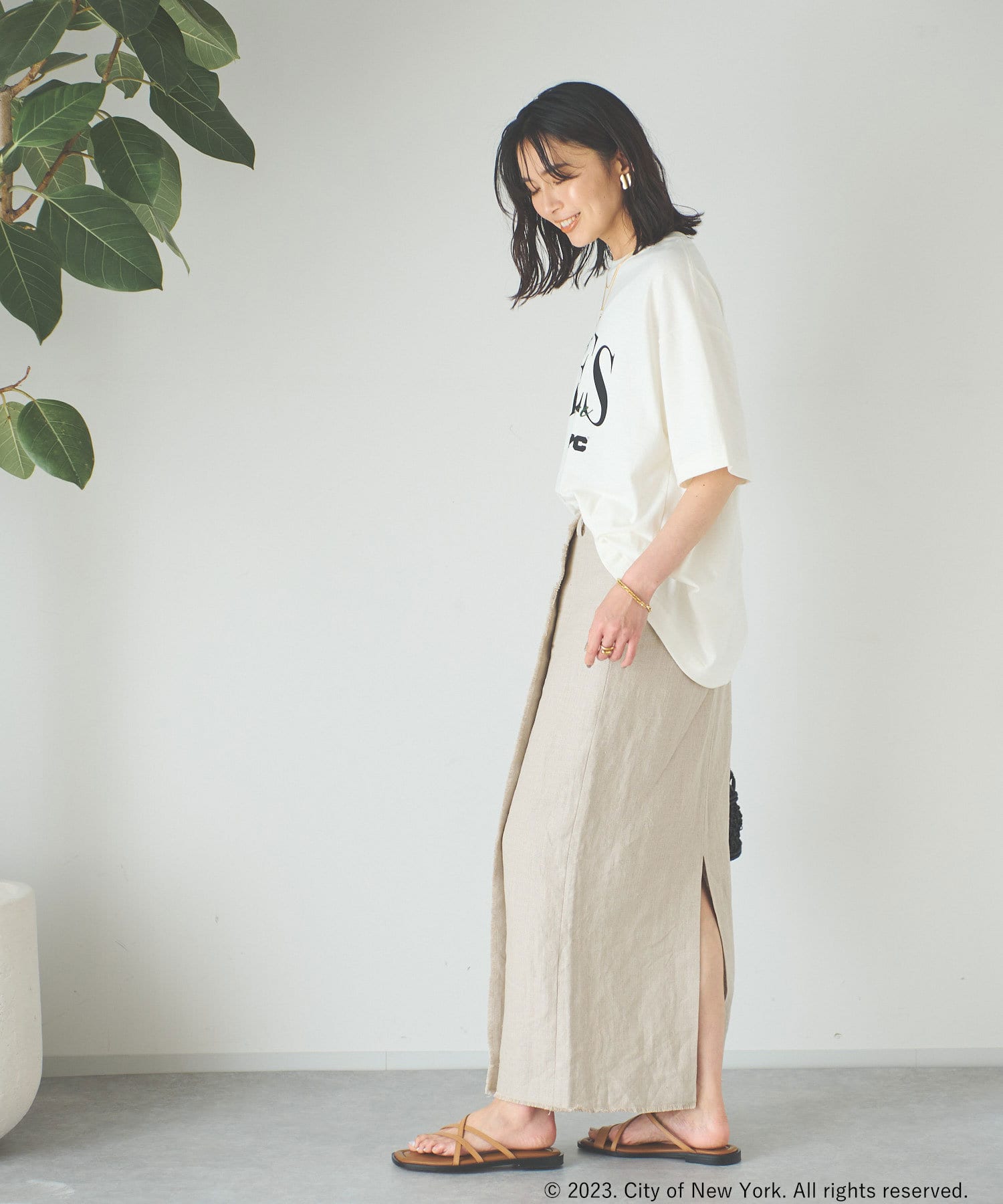 抜け感のあるロゴTシャツはレディライクなアイテムとの相性が抜群。