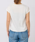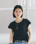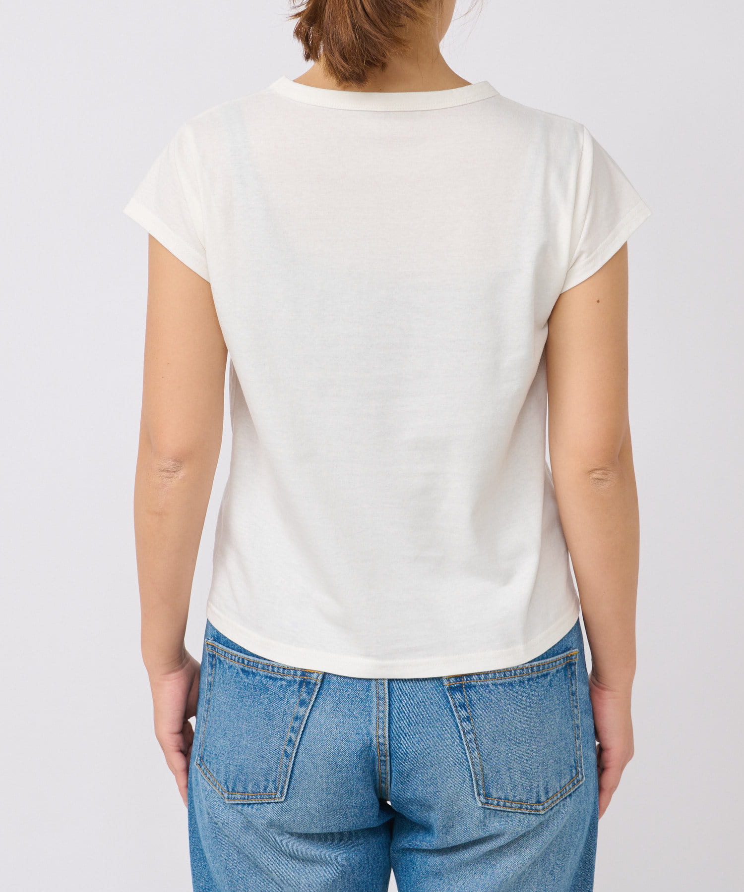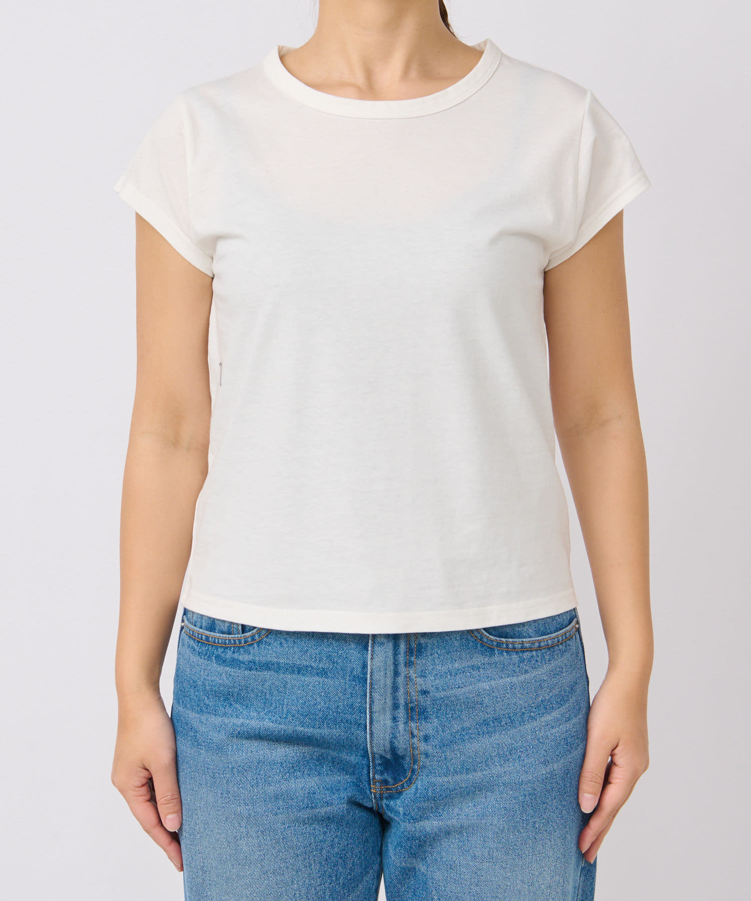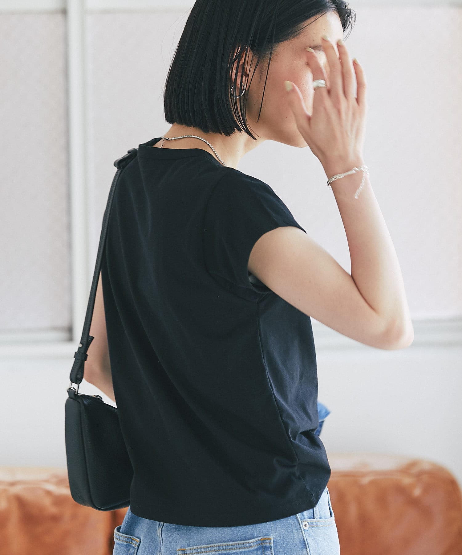 袖丈は潔く短めの半袖で、二の腕をすっきりと見せてくれるシルエット。