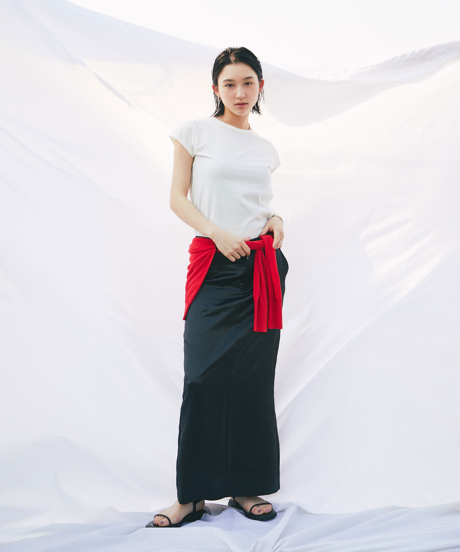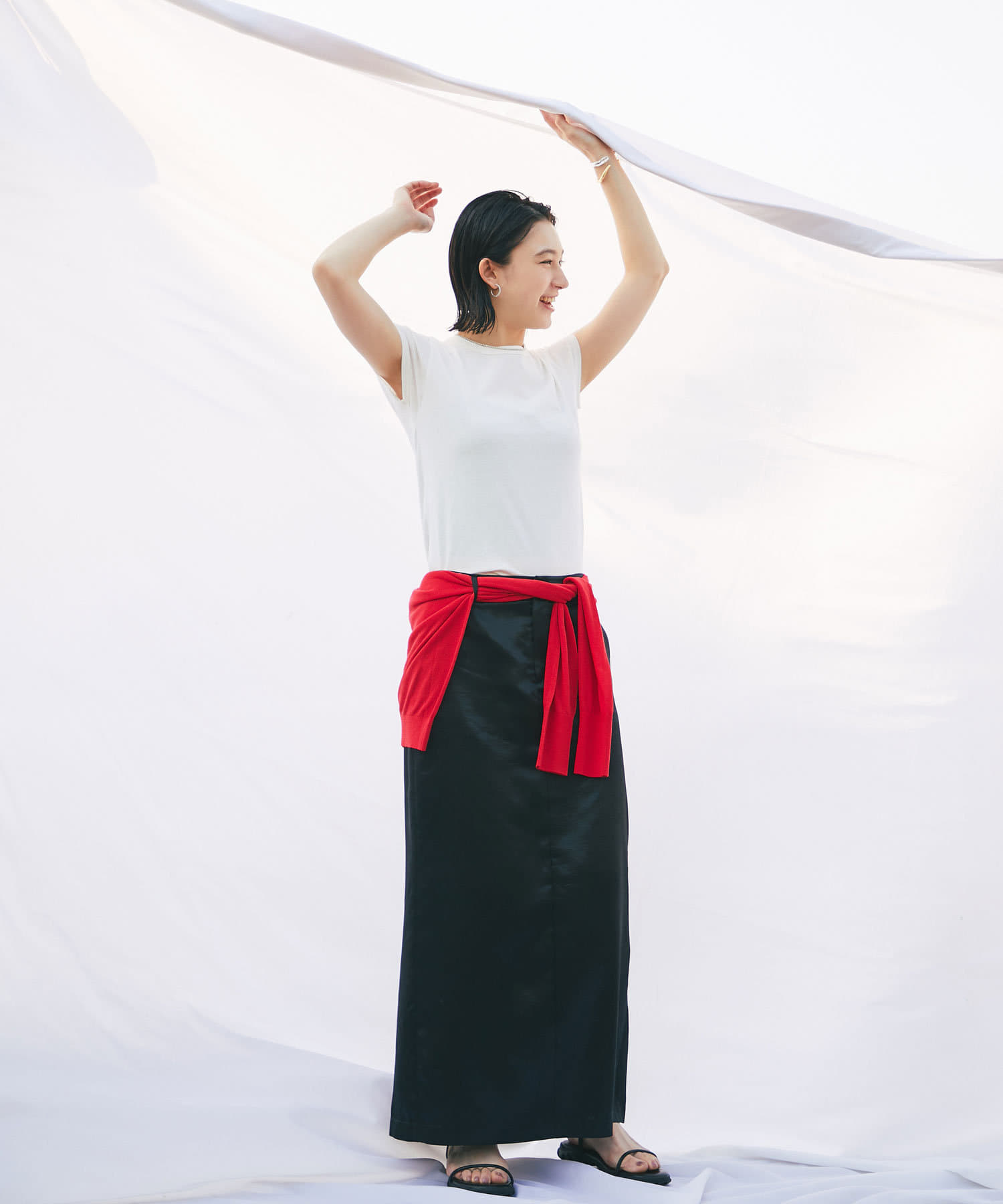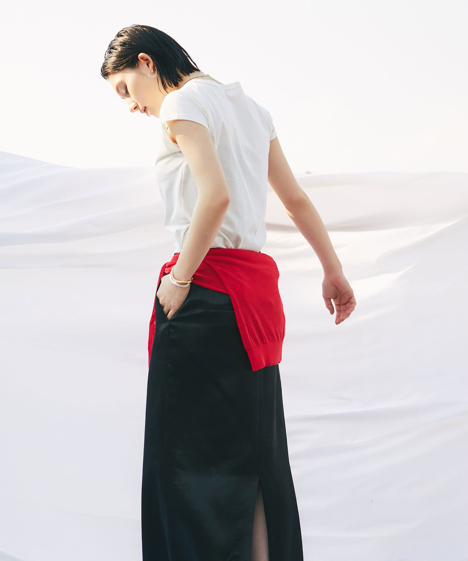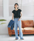 ワイドなカラーデニムや、ボリューミーなフレアスカートと合わせていただくと、ラクチンながら今年らしいコーディネートが叶います。
