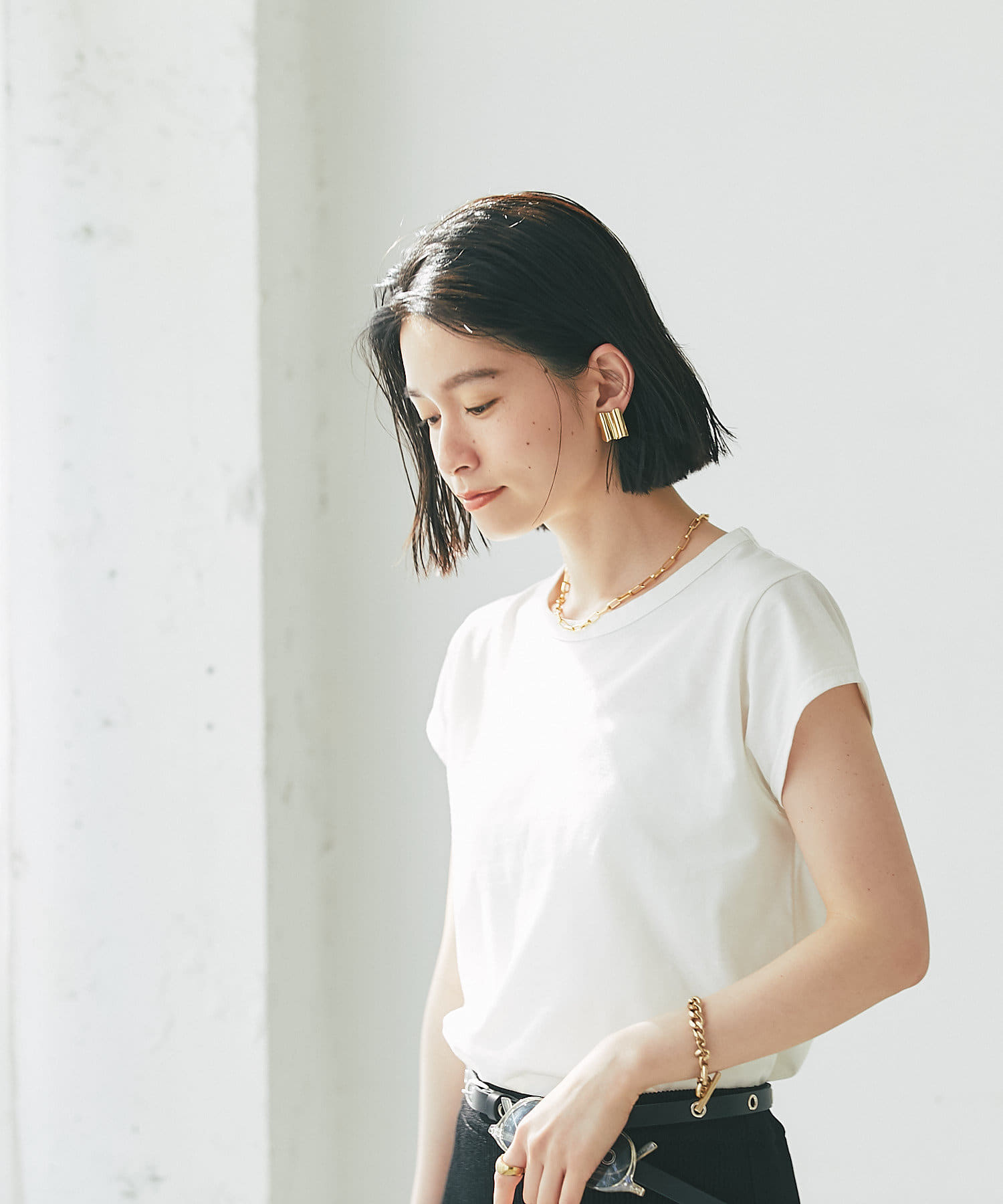 すっきりとした印象のシンプルで無駄のないコンパクトTシャツの提案です。