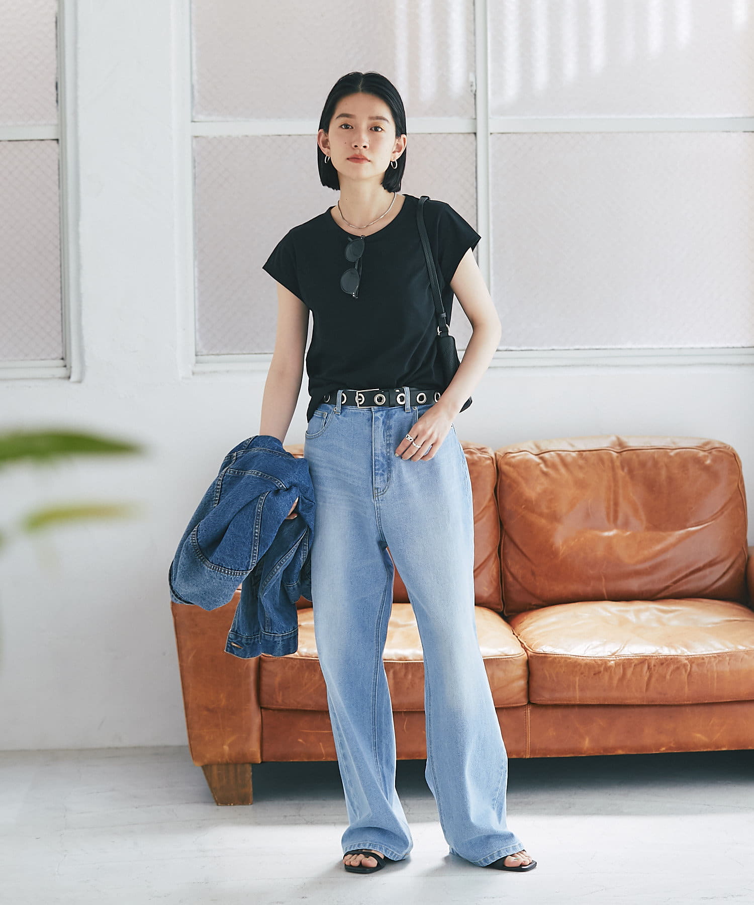 シンプルにデニムに合わせていただくのはもちろん、コンパクトなシルエットがより際立つよう、ボリュームのあるボトムと合わせていただくのも素敵です。