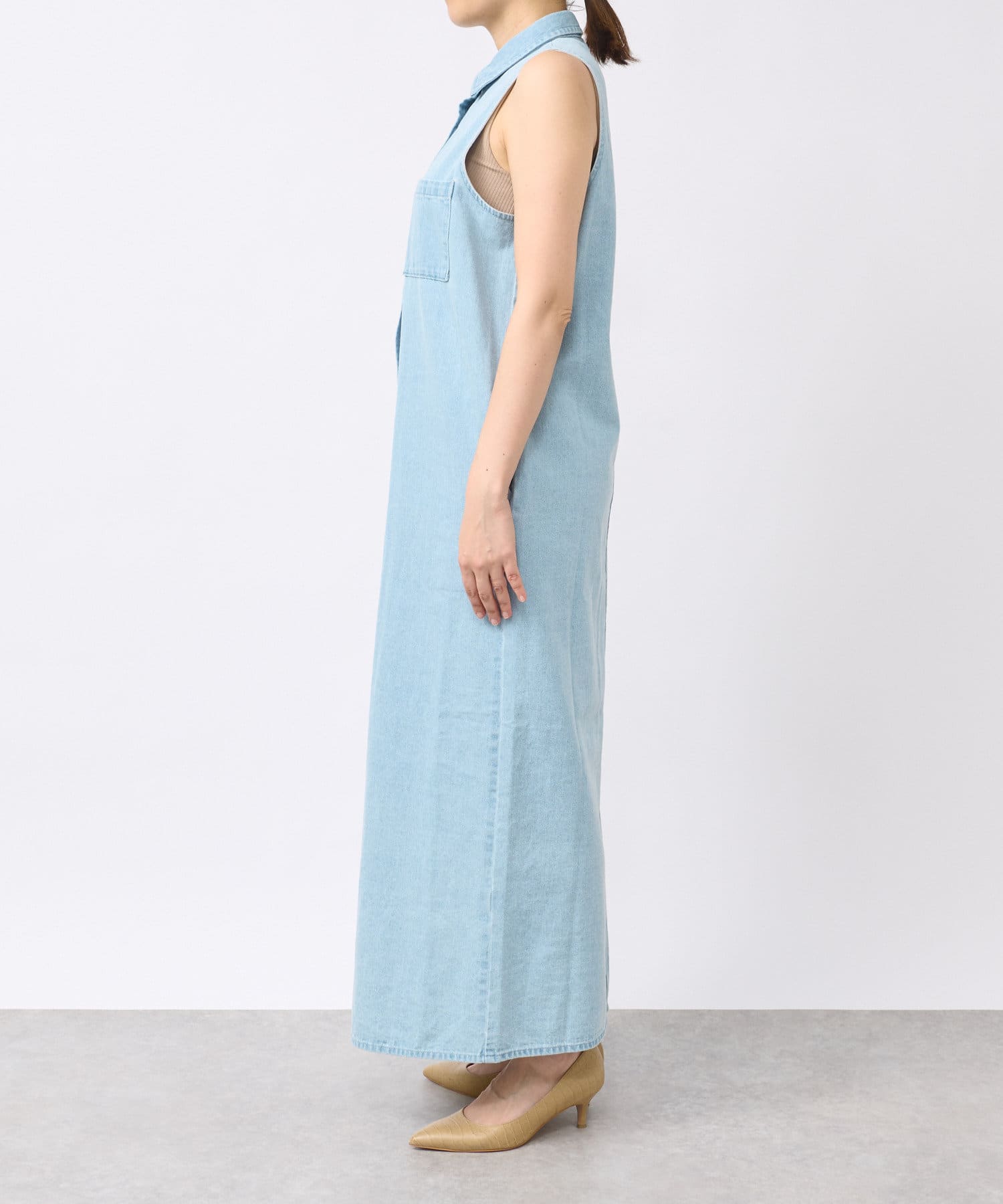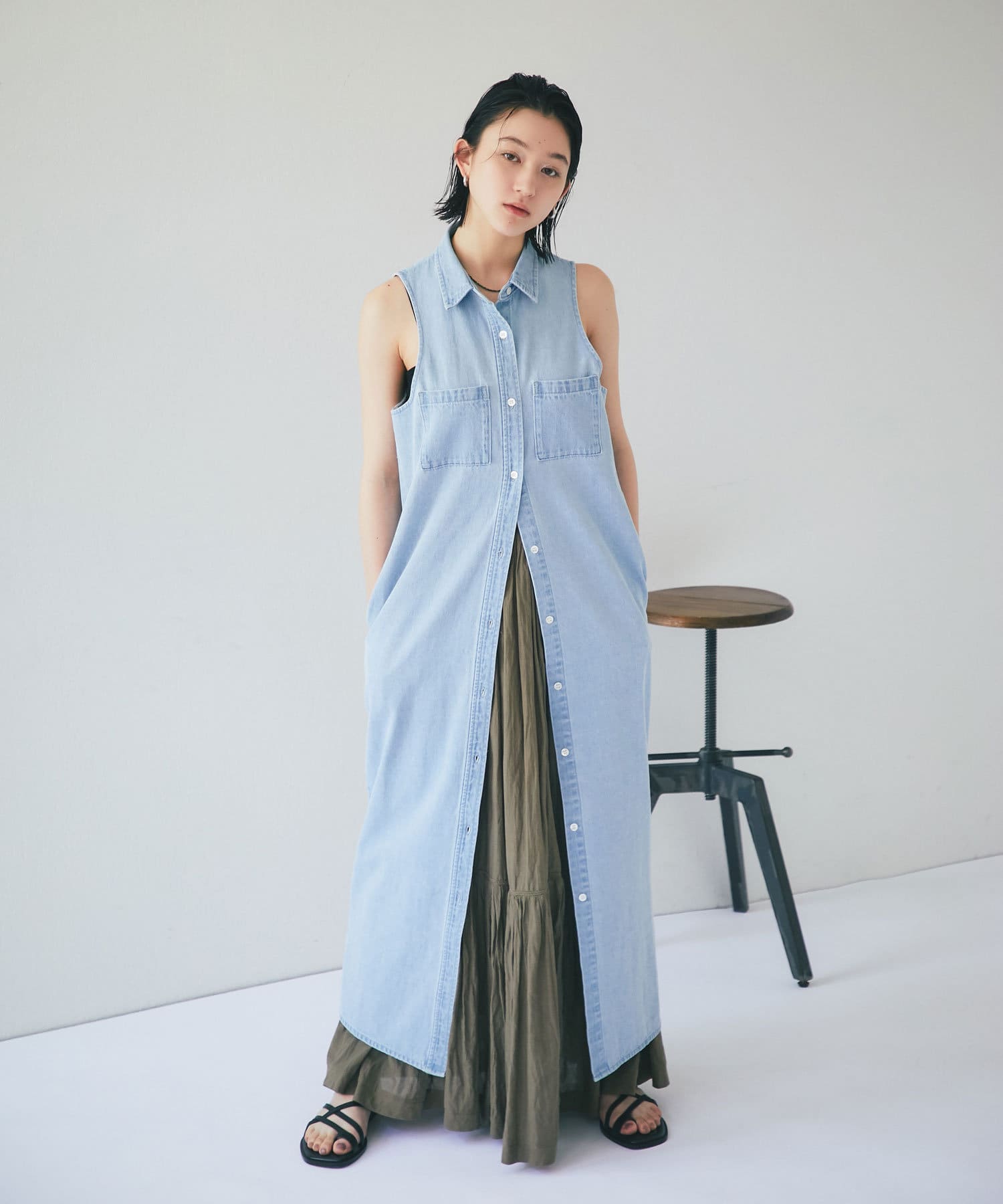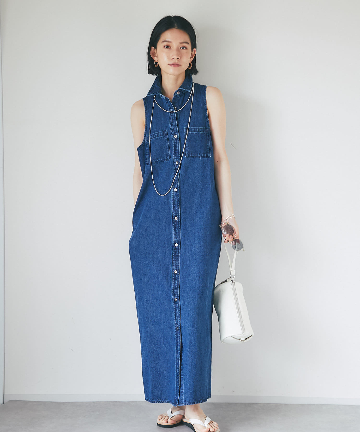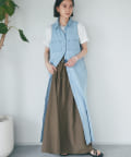 カジュアルなイメージの強いデニム生地ですが、マキシ丈ですので上品な印象で着ていただけます。