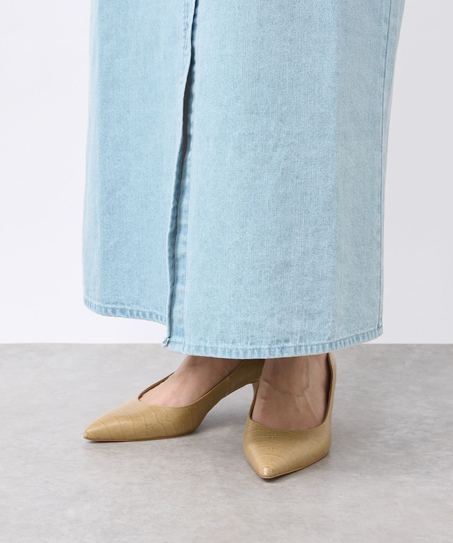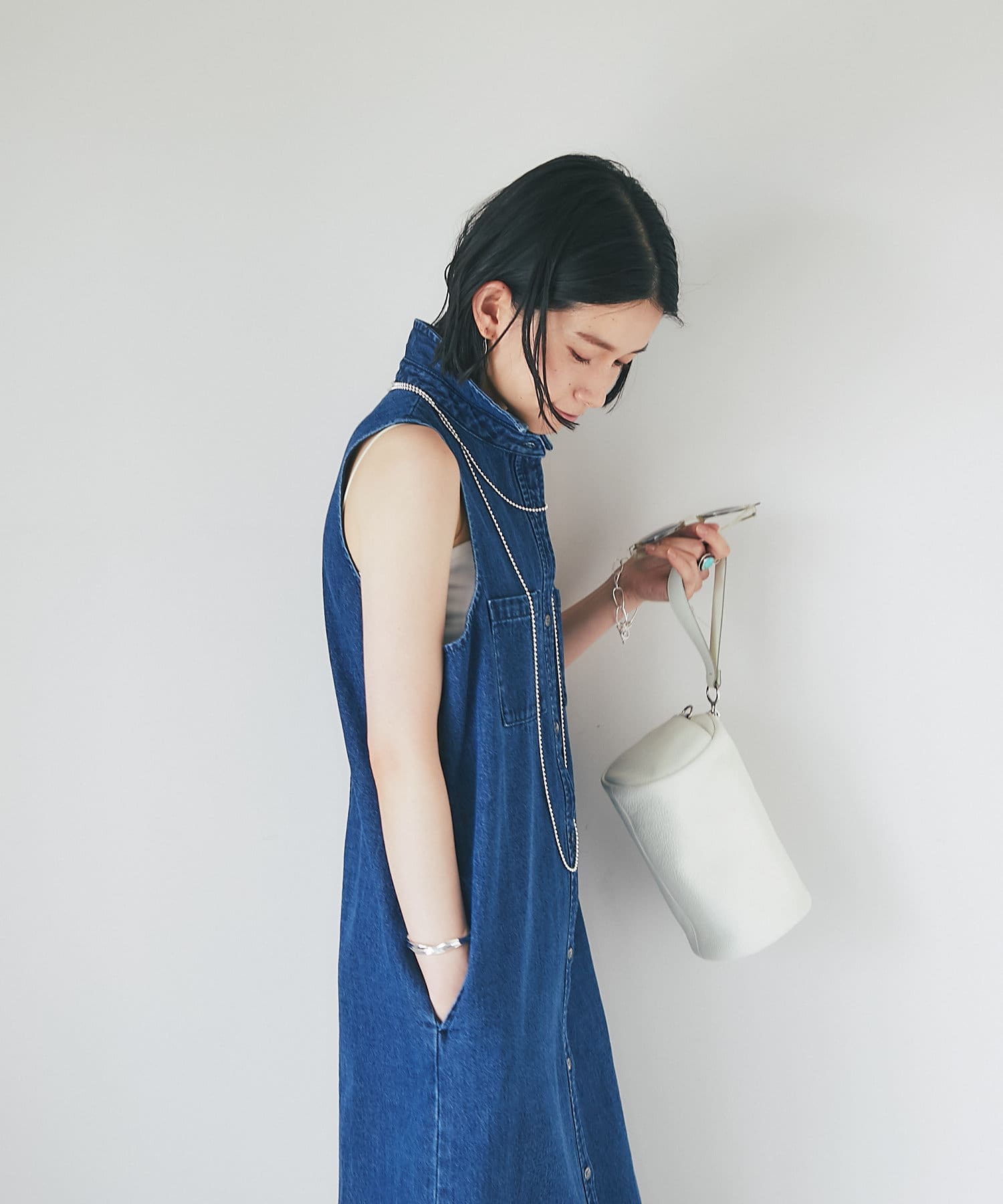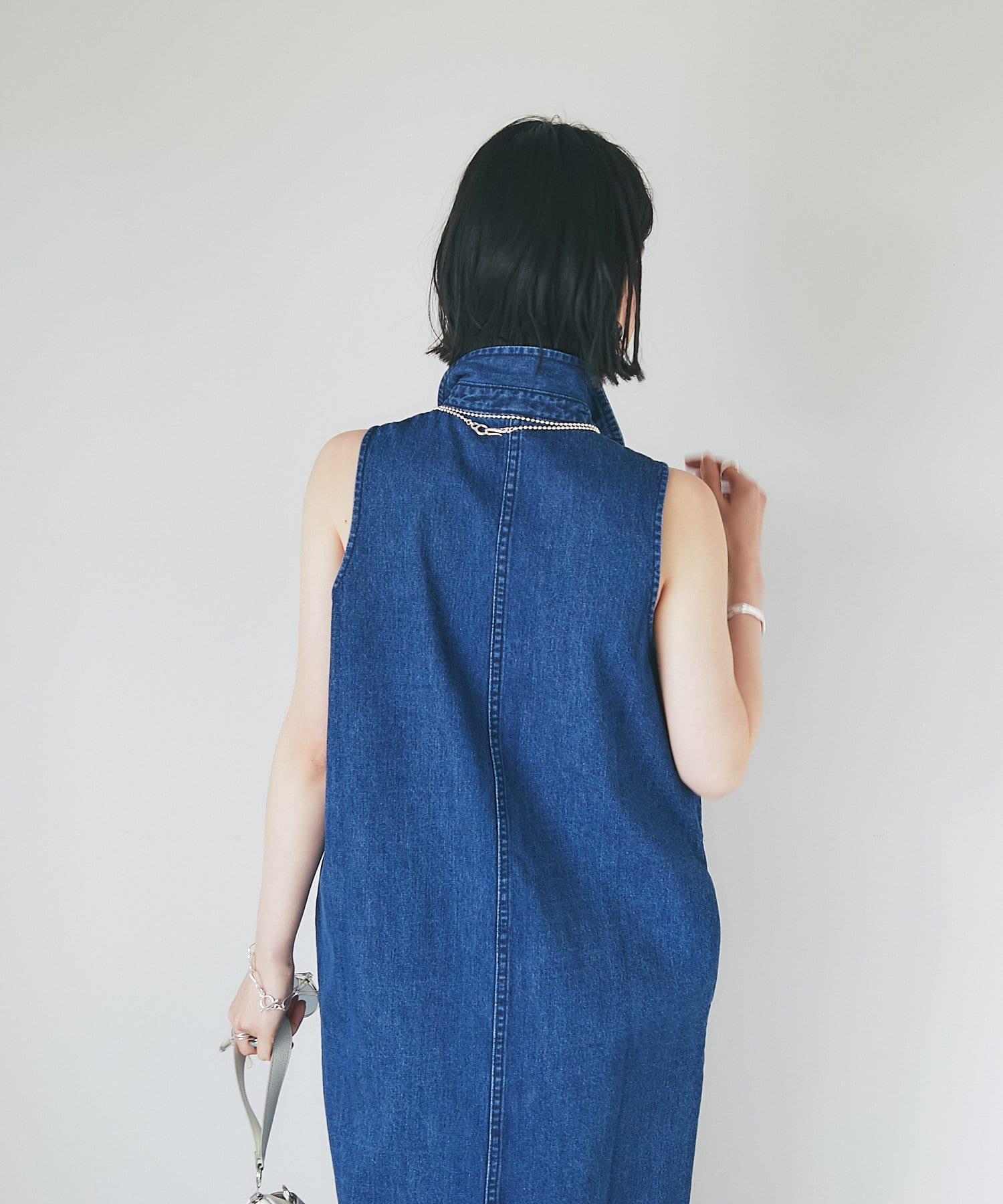 カジュアルなイメージの強いデニム生地ですが、マキシ丈ですので上品な印象で着ていただけます。