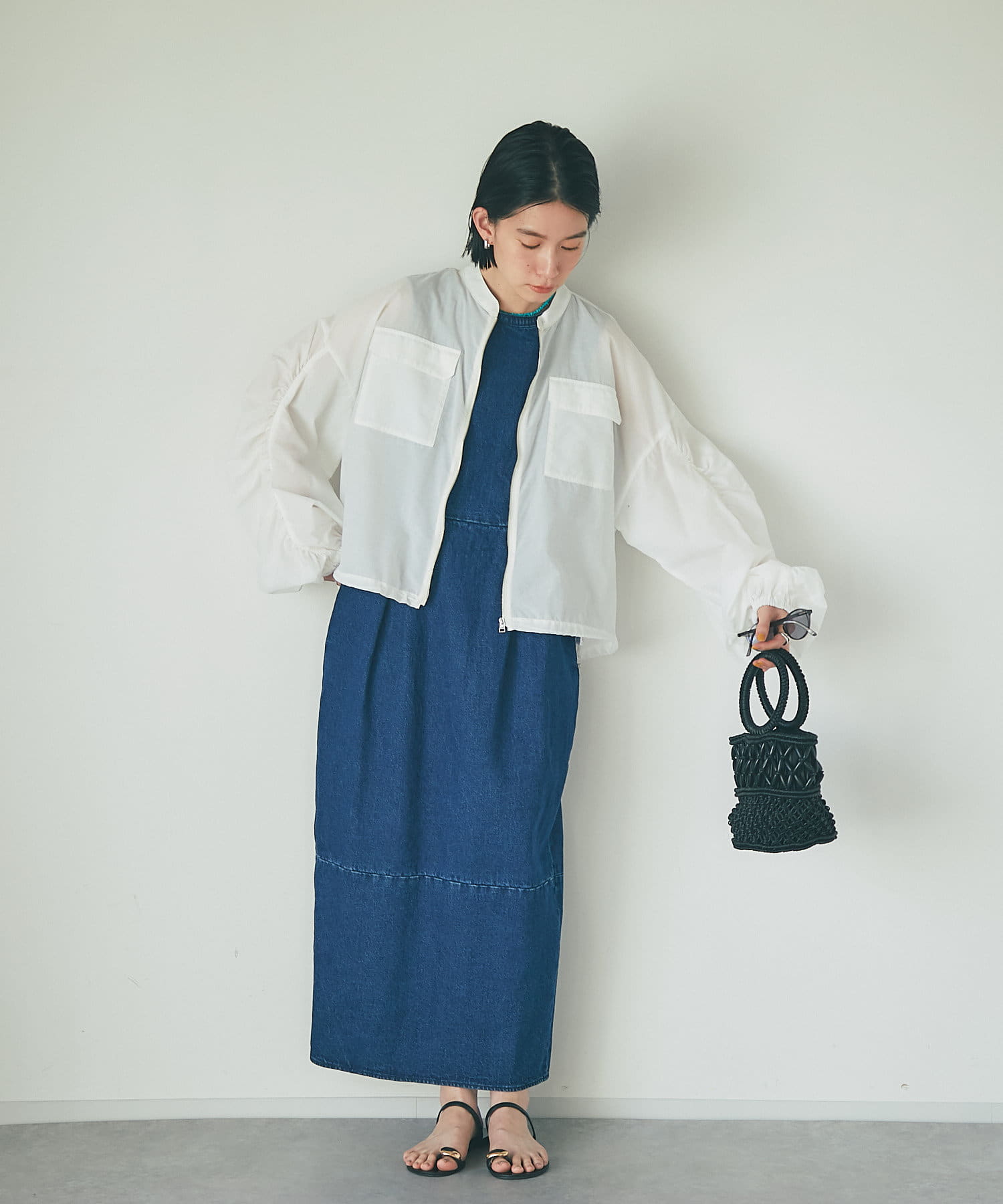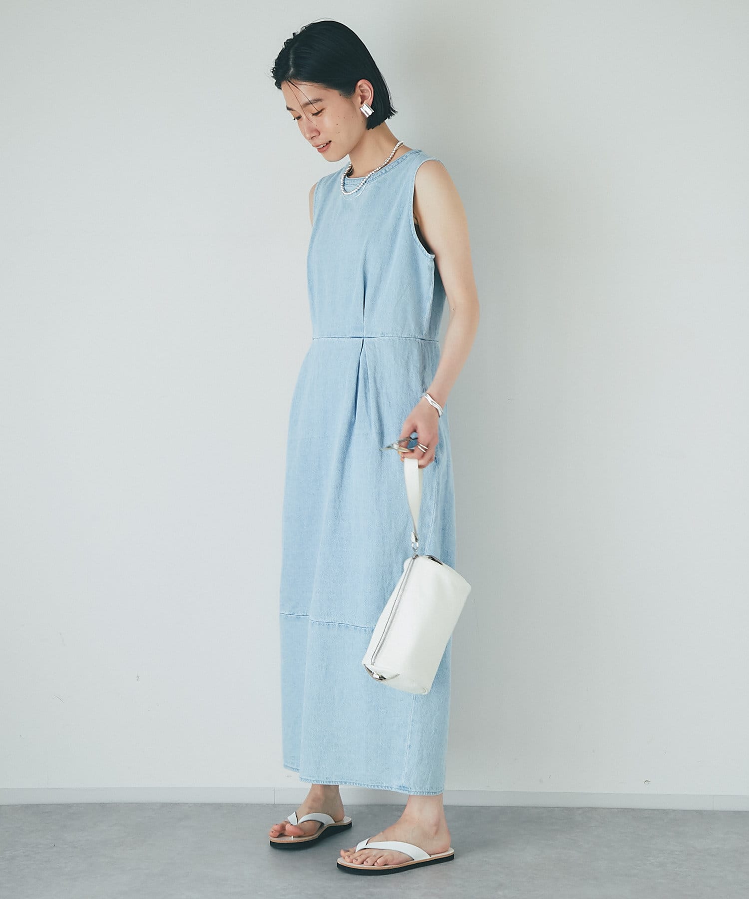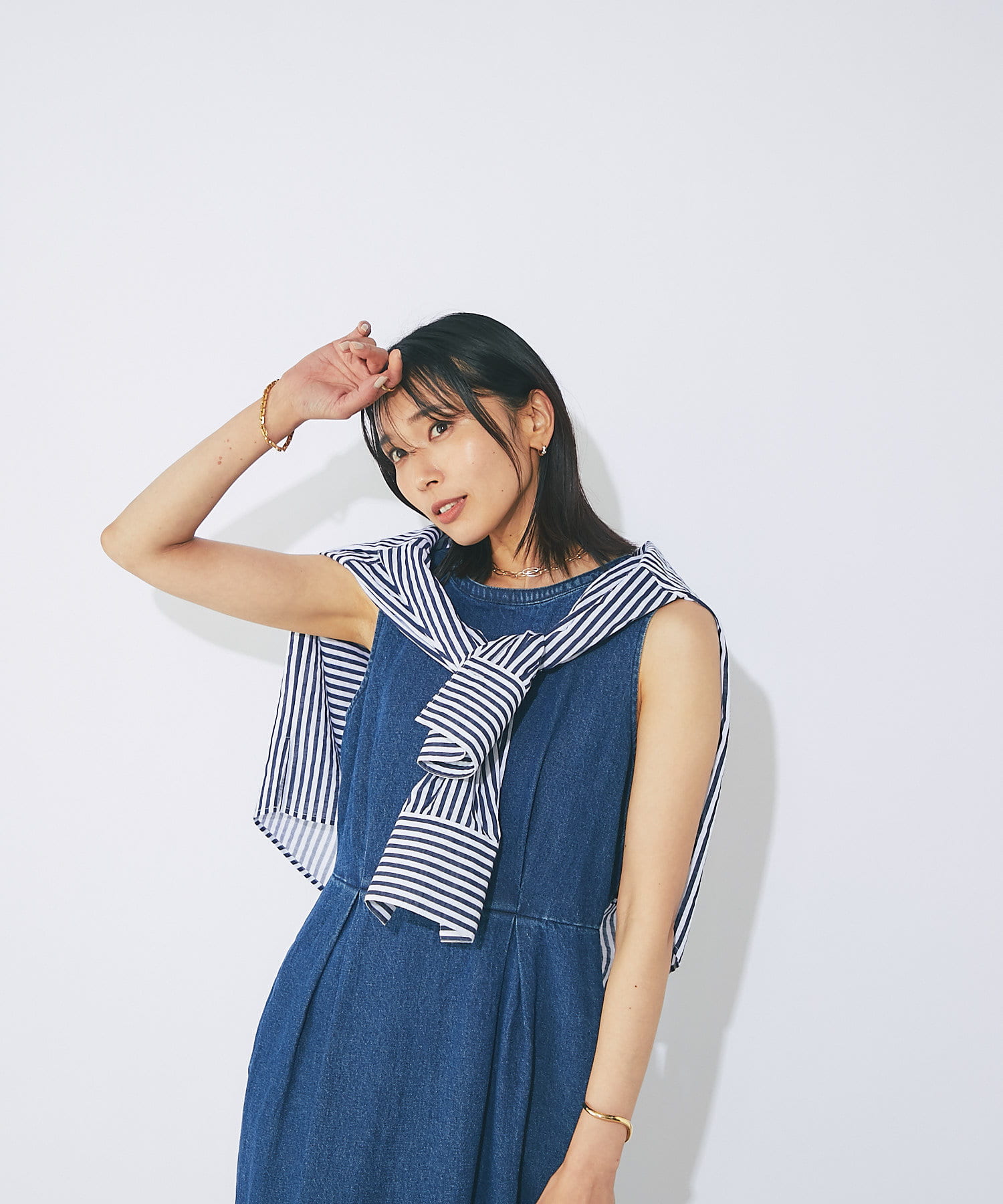 ノースリーブデザインなので1枚できるのもよし、ジャケットやカーディガンと合わせて着るのもおすすめです。