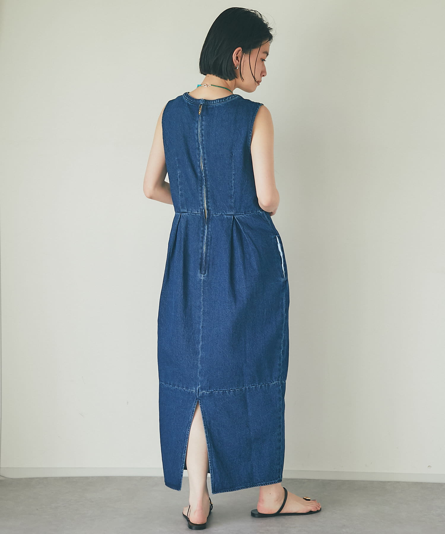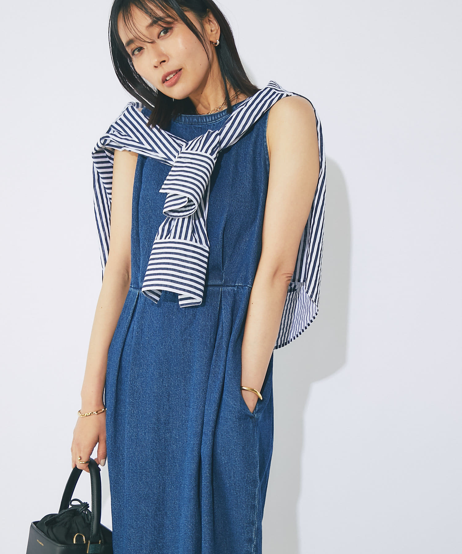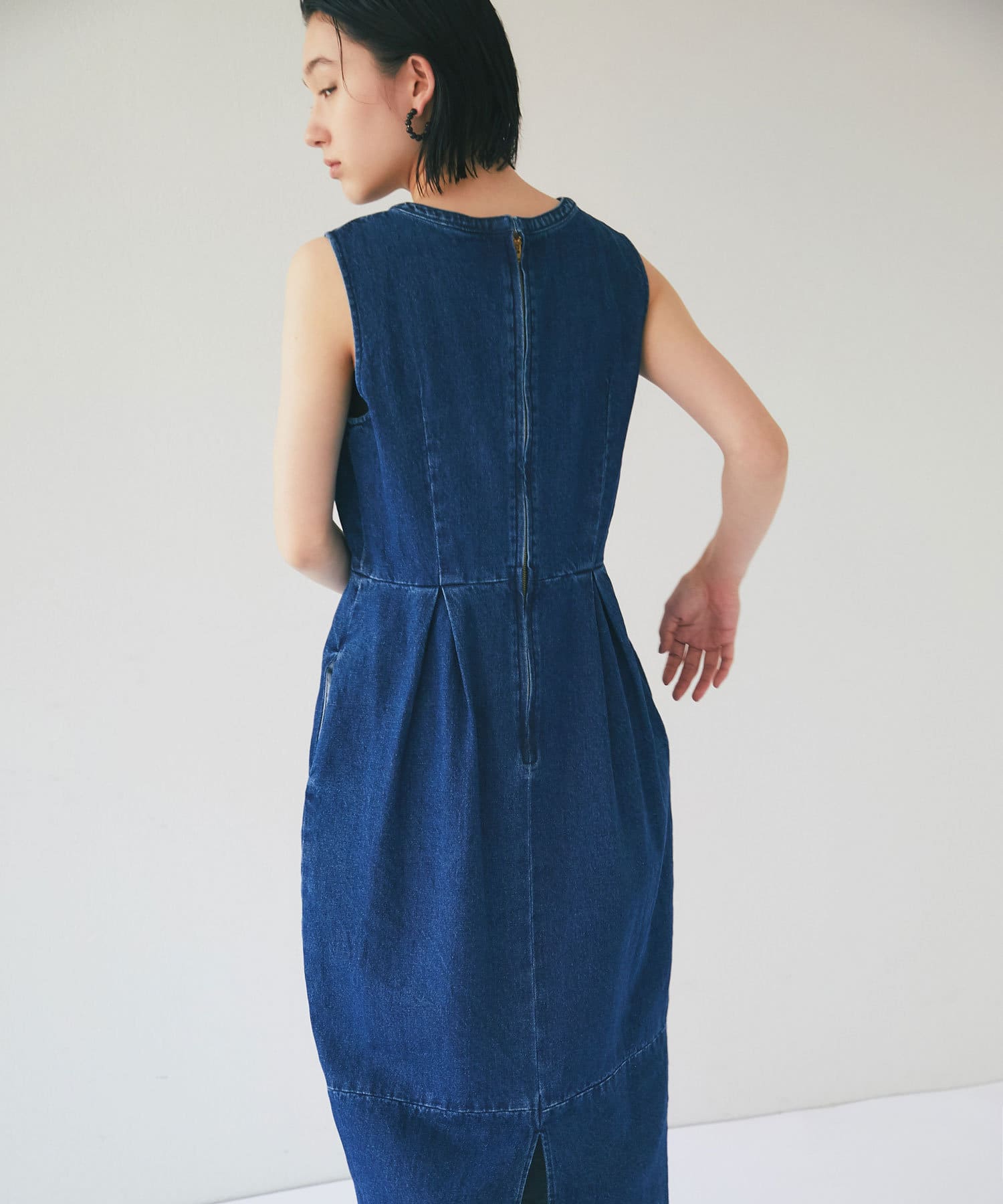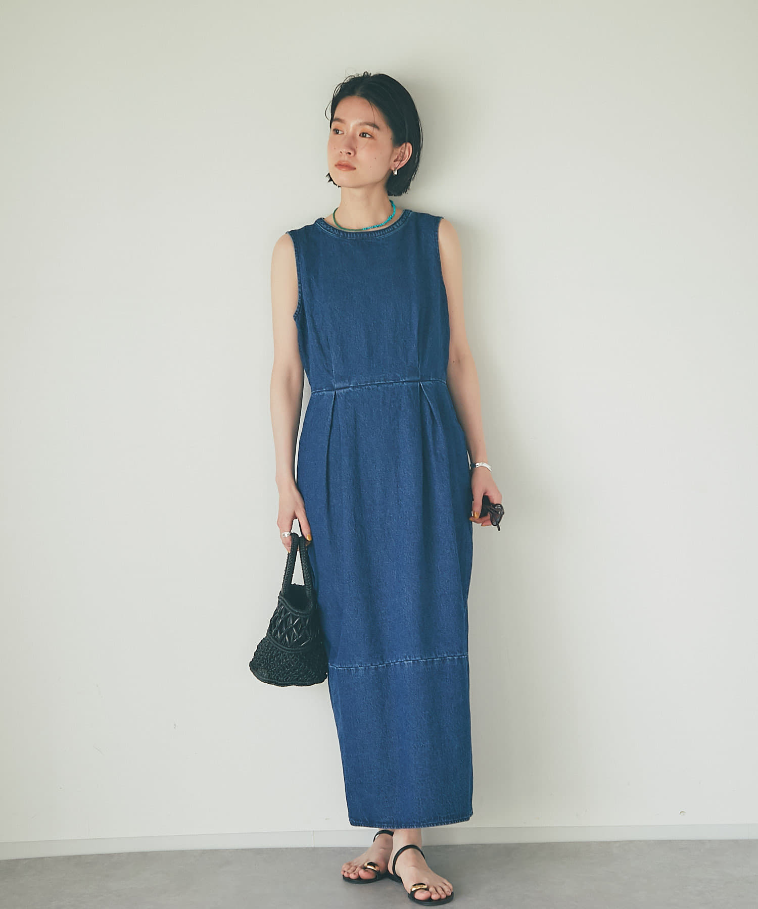 デザインシルエットとデニム素材でトレンド感のあるワンピース