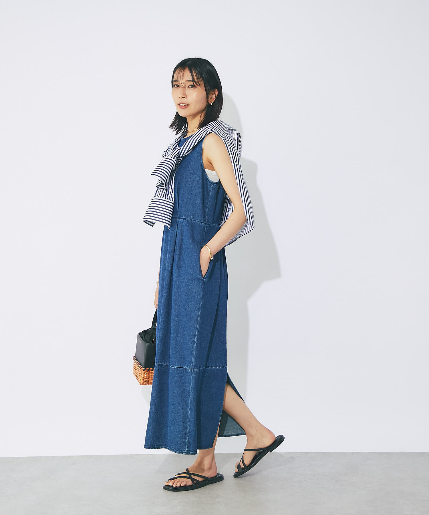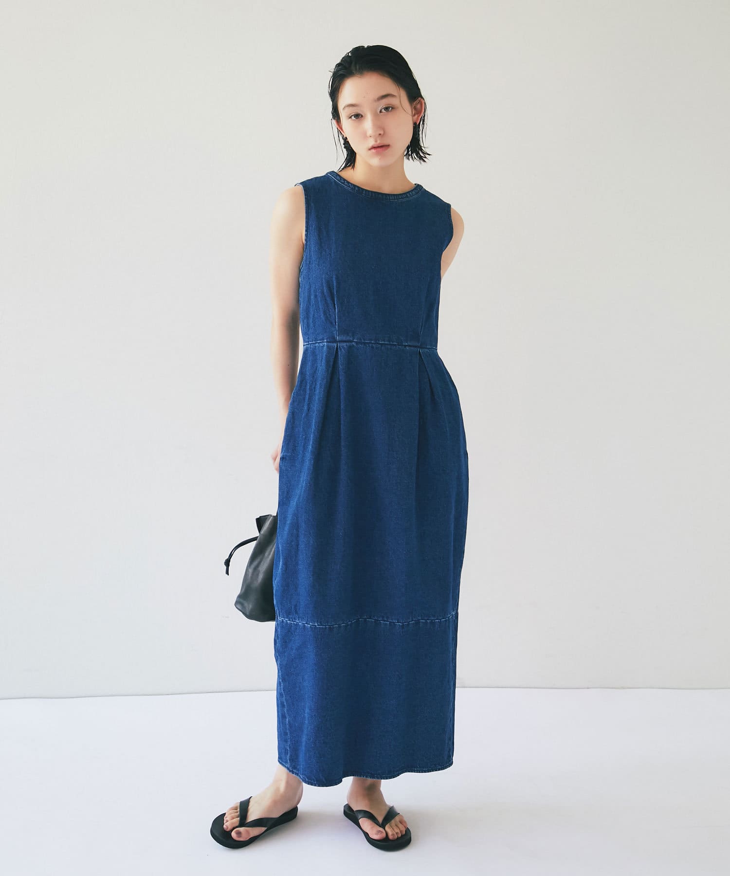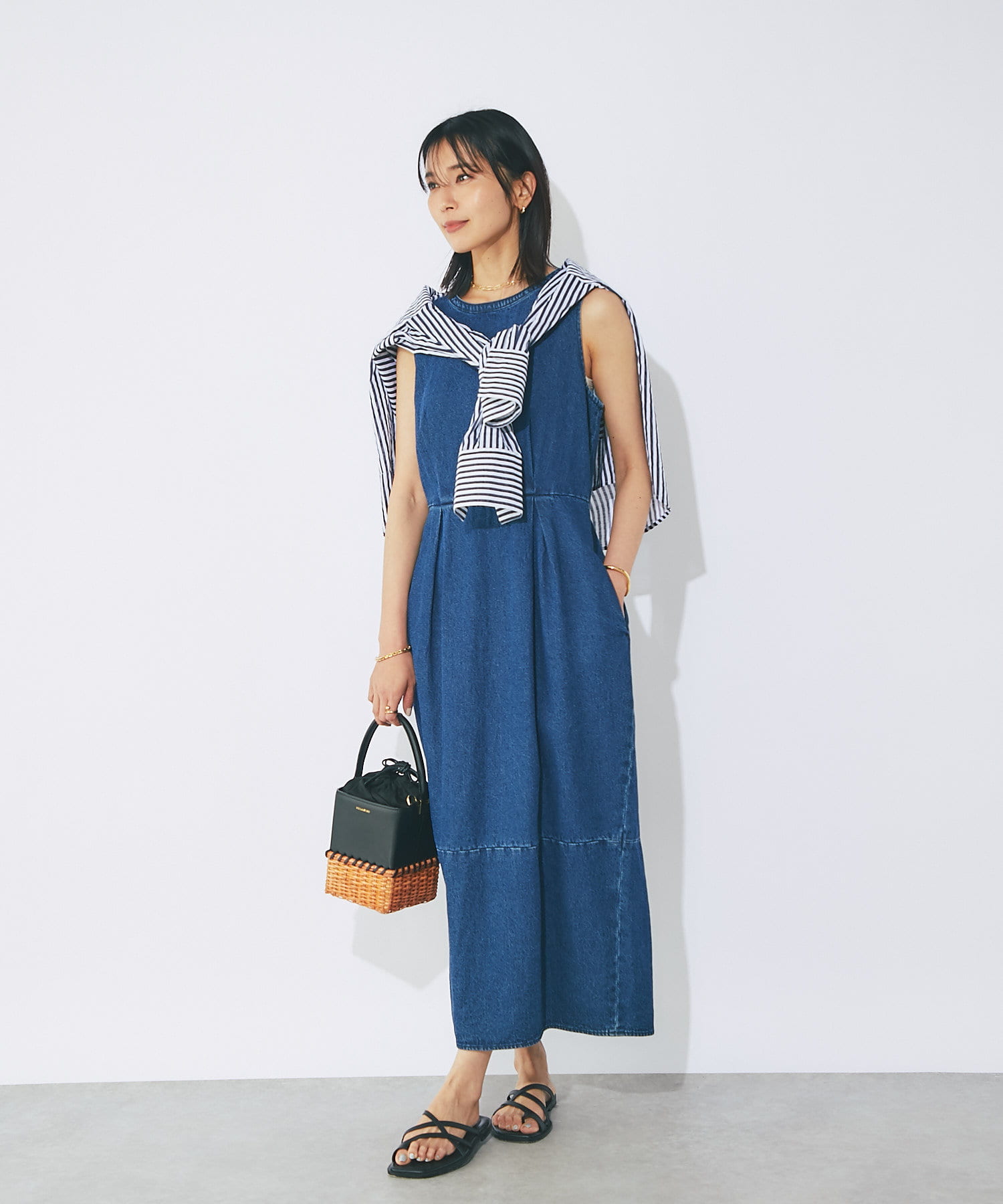 デザインシルエットとデニム素材でトレンド感のあるワンピース