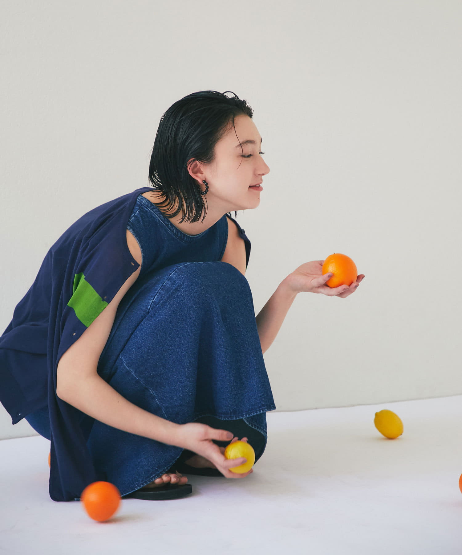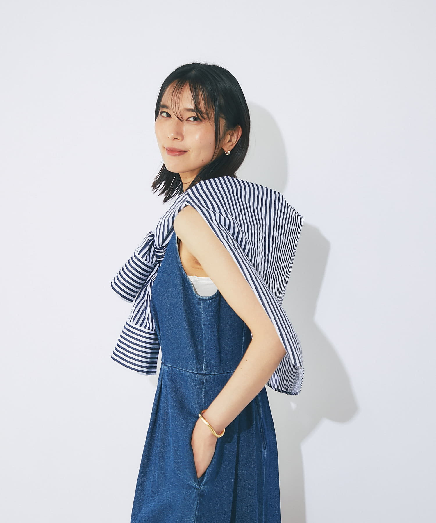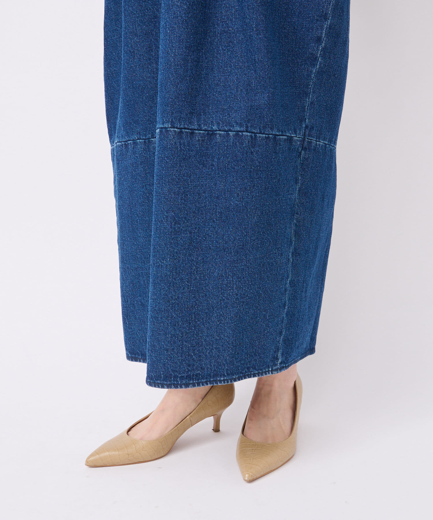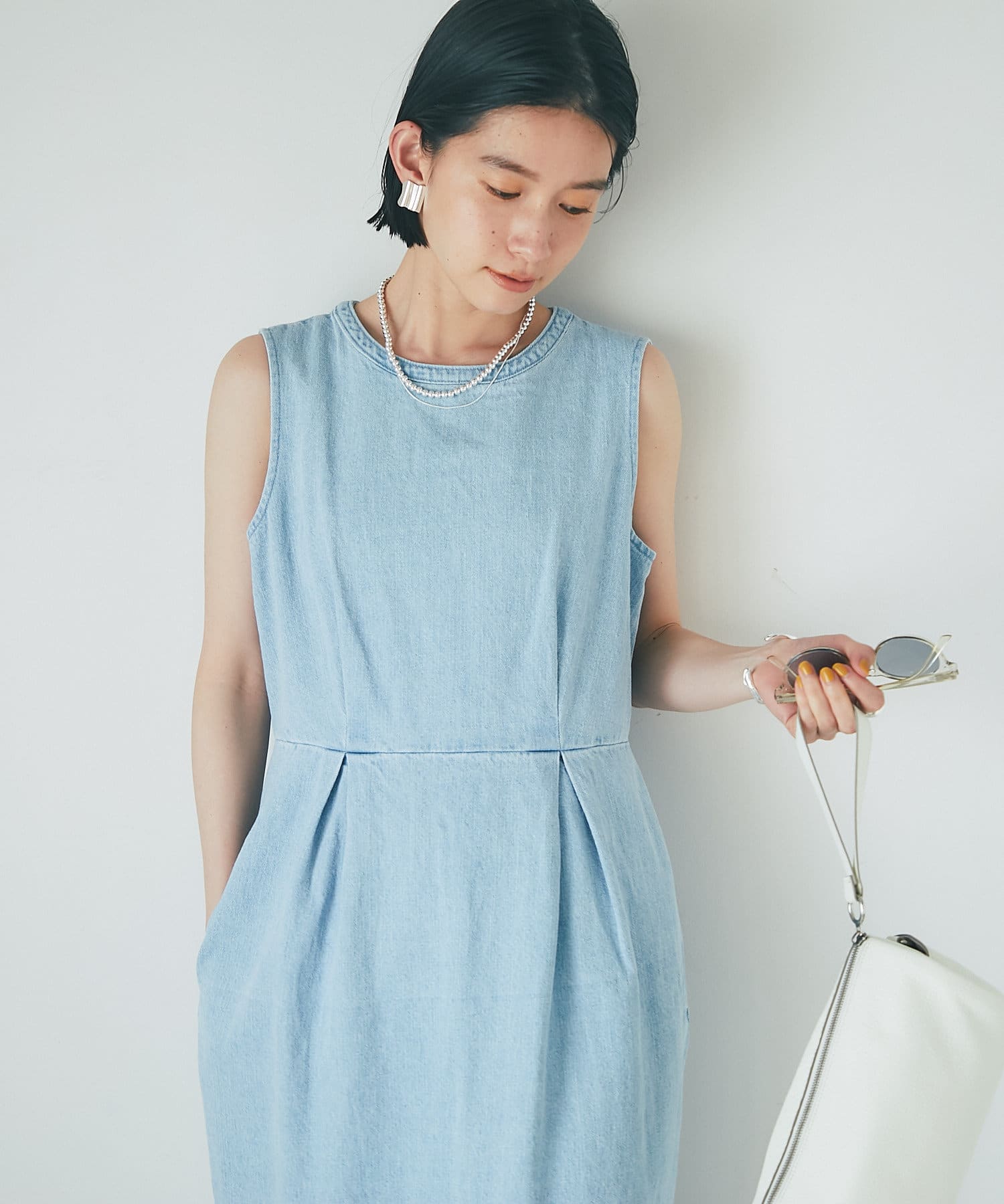デザインシルエットとデニム素材でトレンド感のあるワンピース