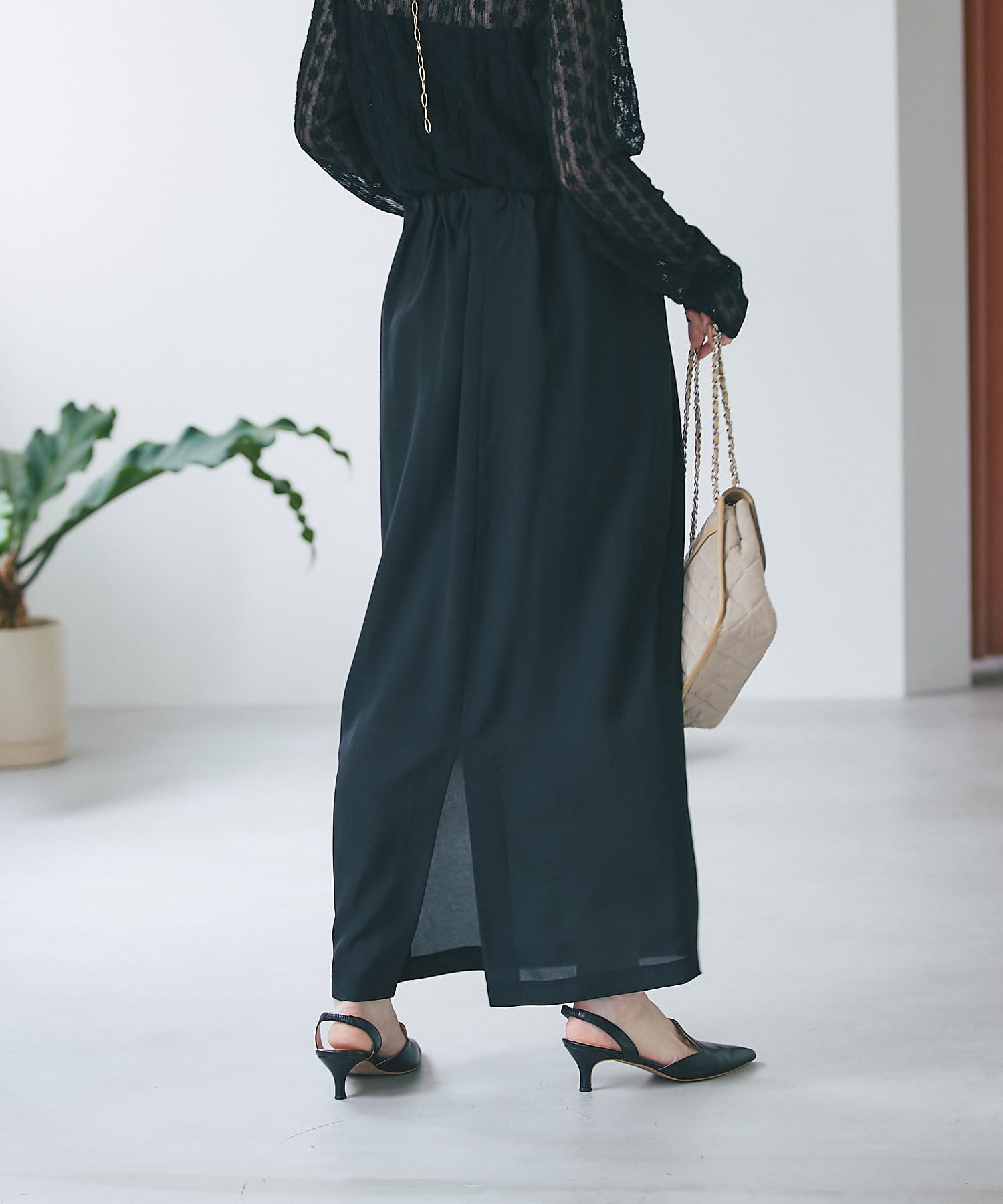 履き心地もストレスフリー。ラクチンなのに綺麗な印象でも着用いただけるスカートです。