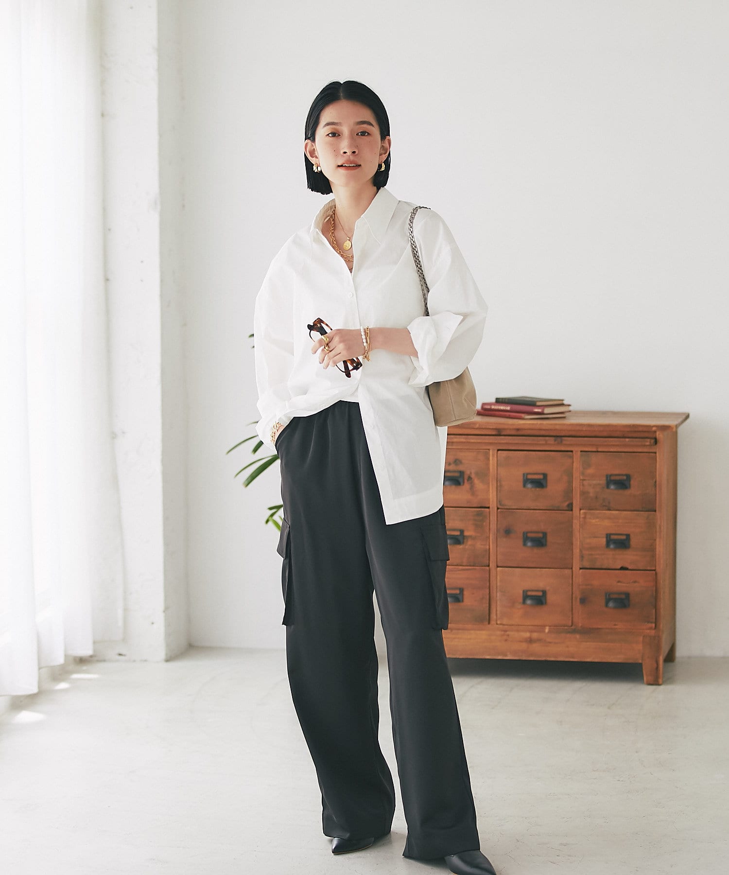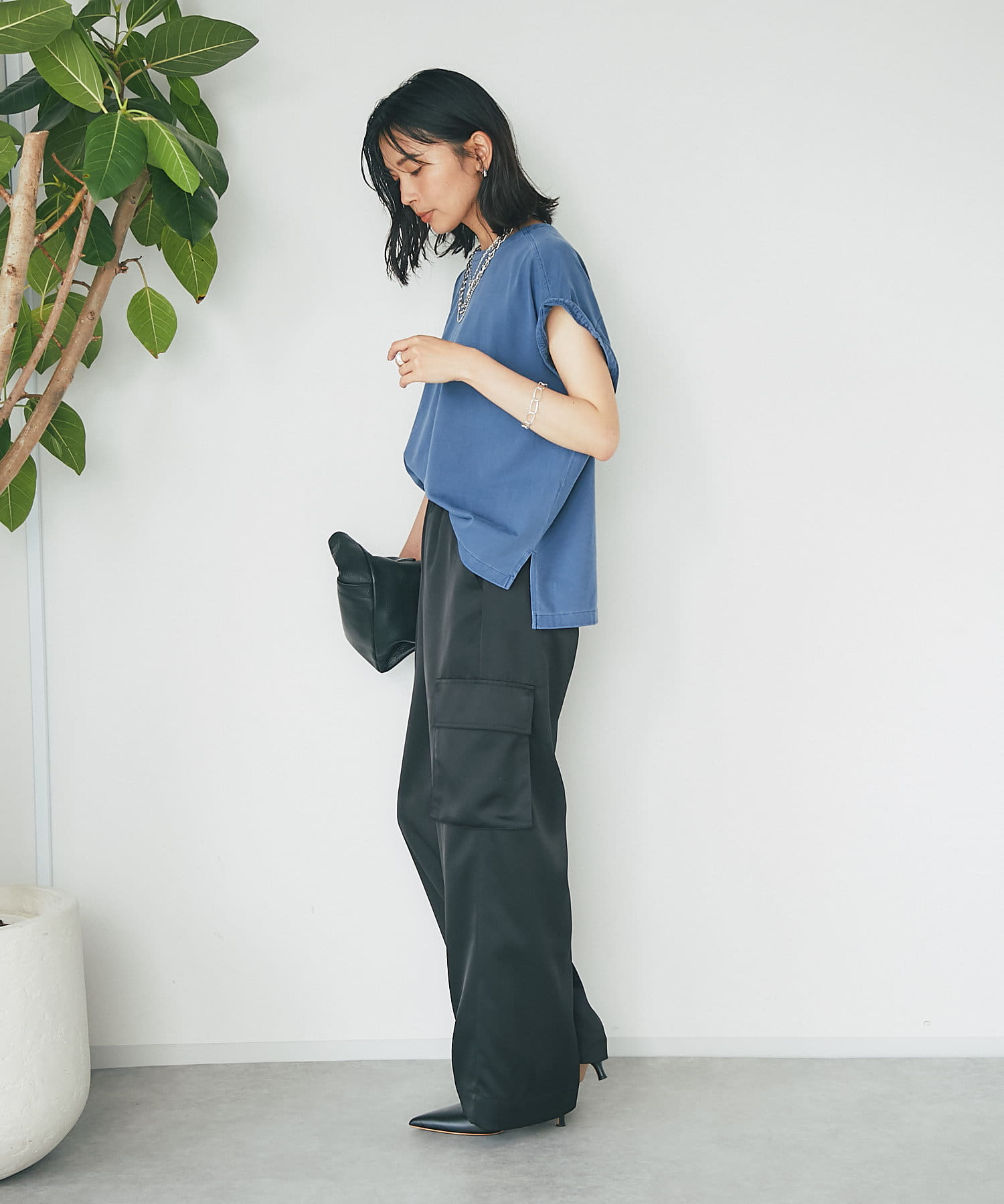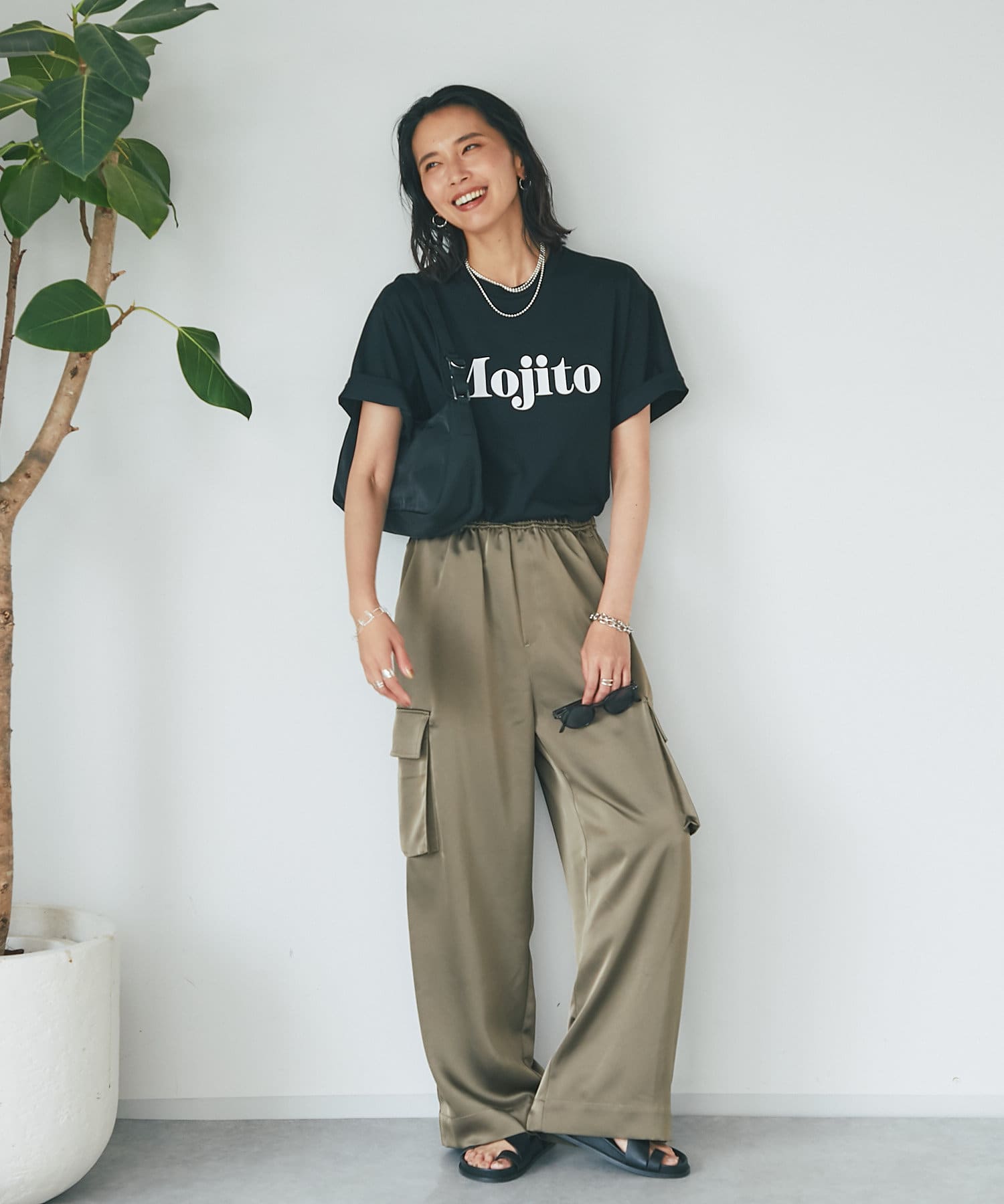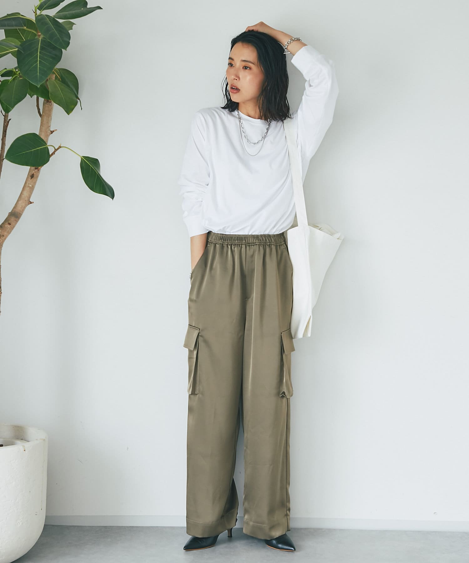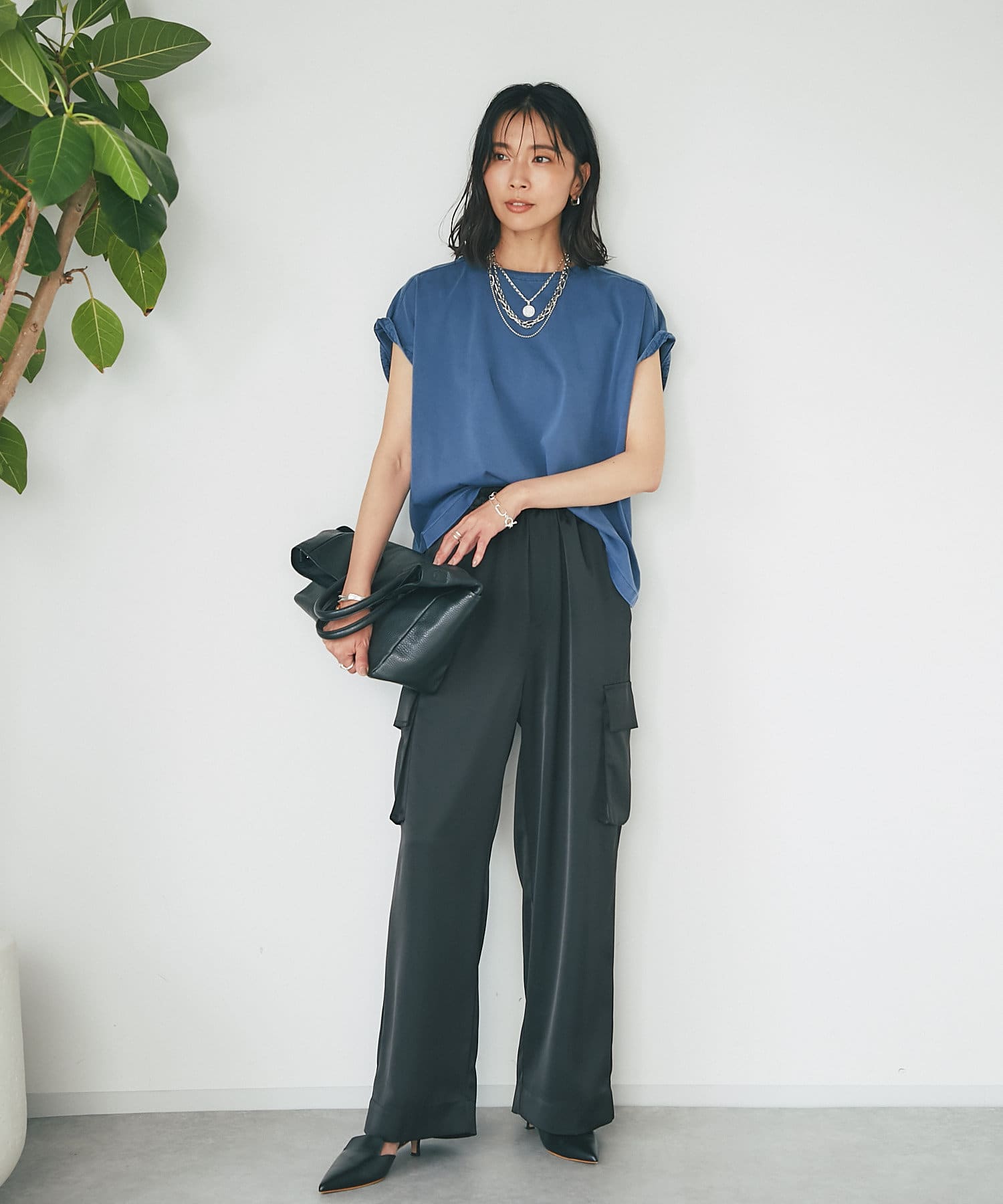 シンプルなカットソーと合わせてスタイリングするだけでも様になります。
