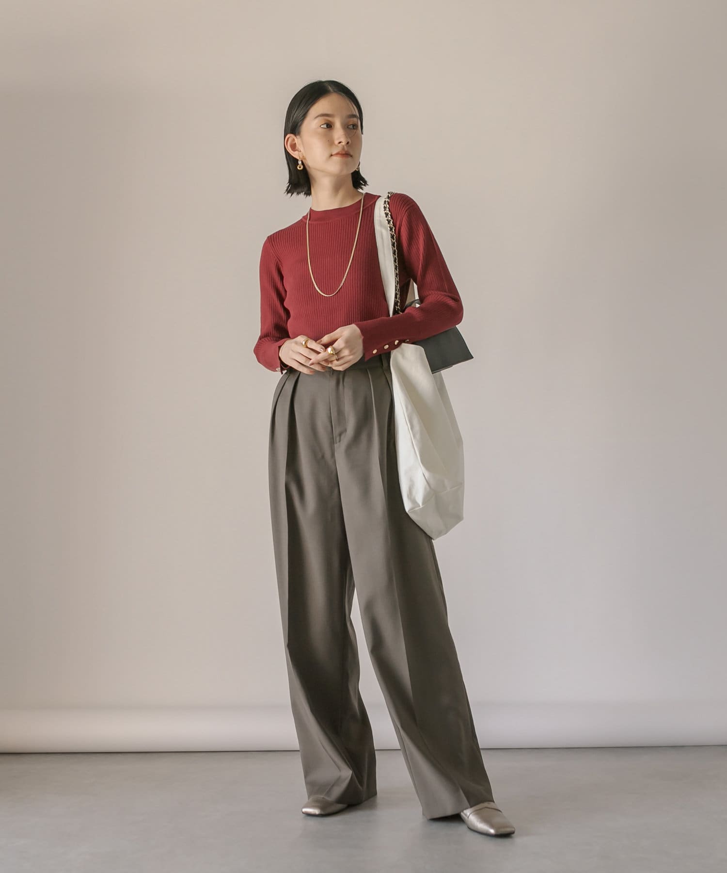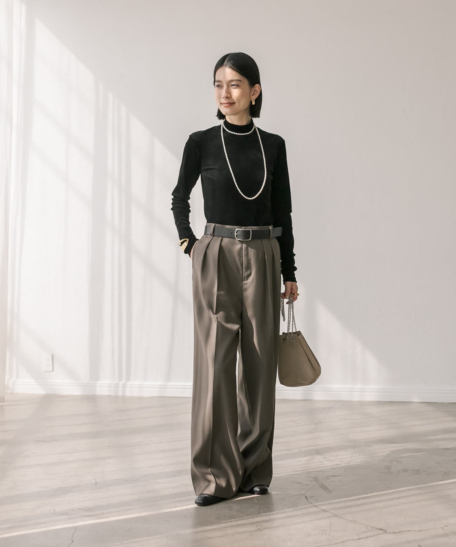 上品な印象の素材感なのでカジュアルな印象にならず程よくきちんと感を与えてくれます。
