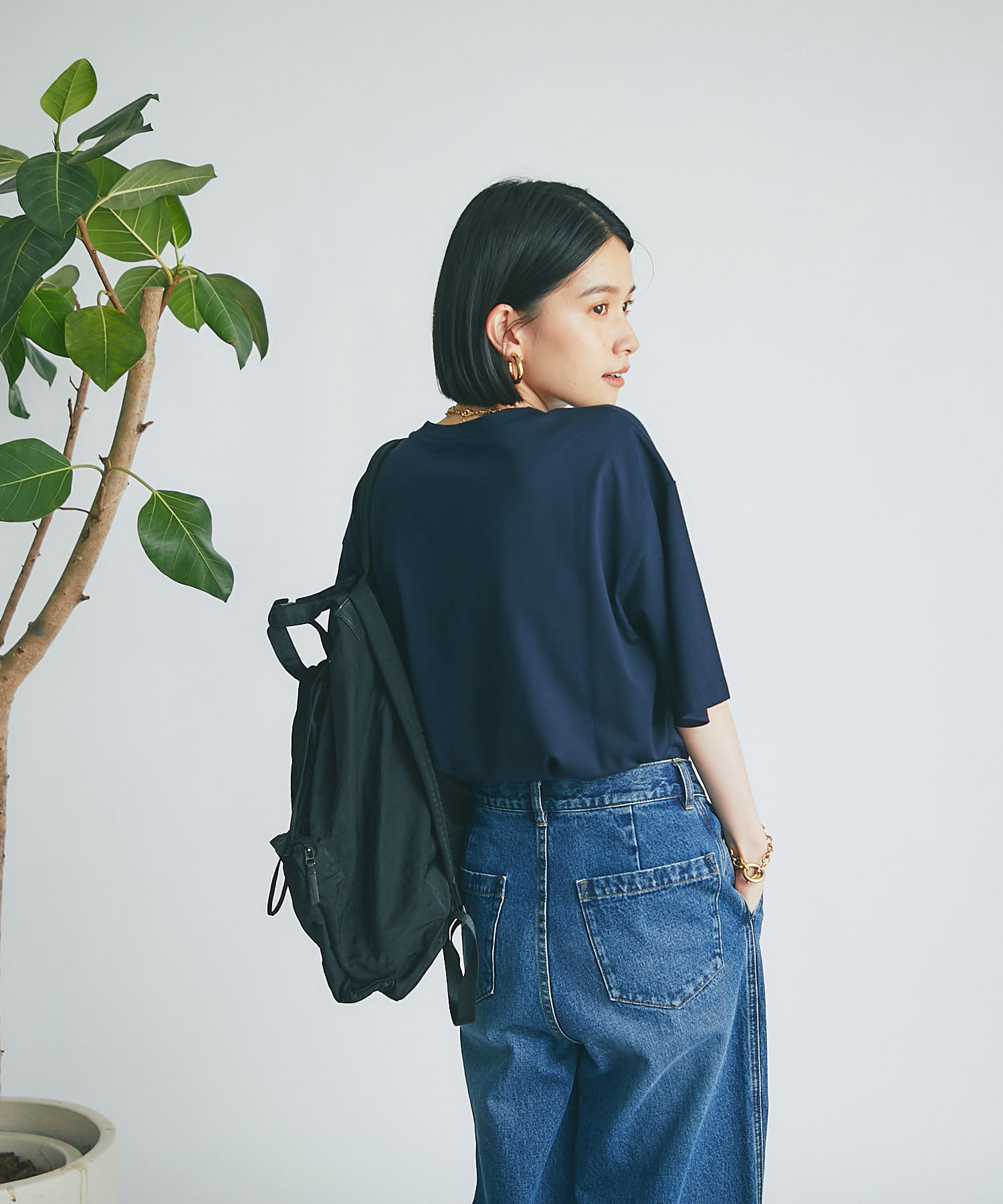 毛羽感がなく、カジュアルな印象になりすぎない生地を使用しているため、オーバーサイズでもほどよくきちんとした印象で着用いただけます。
