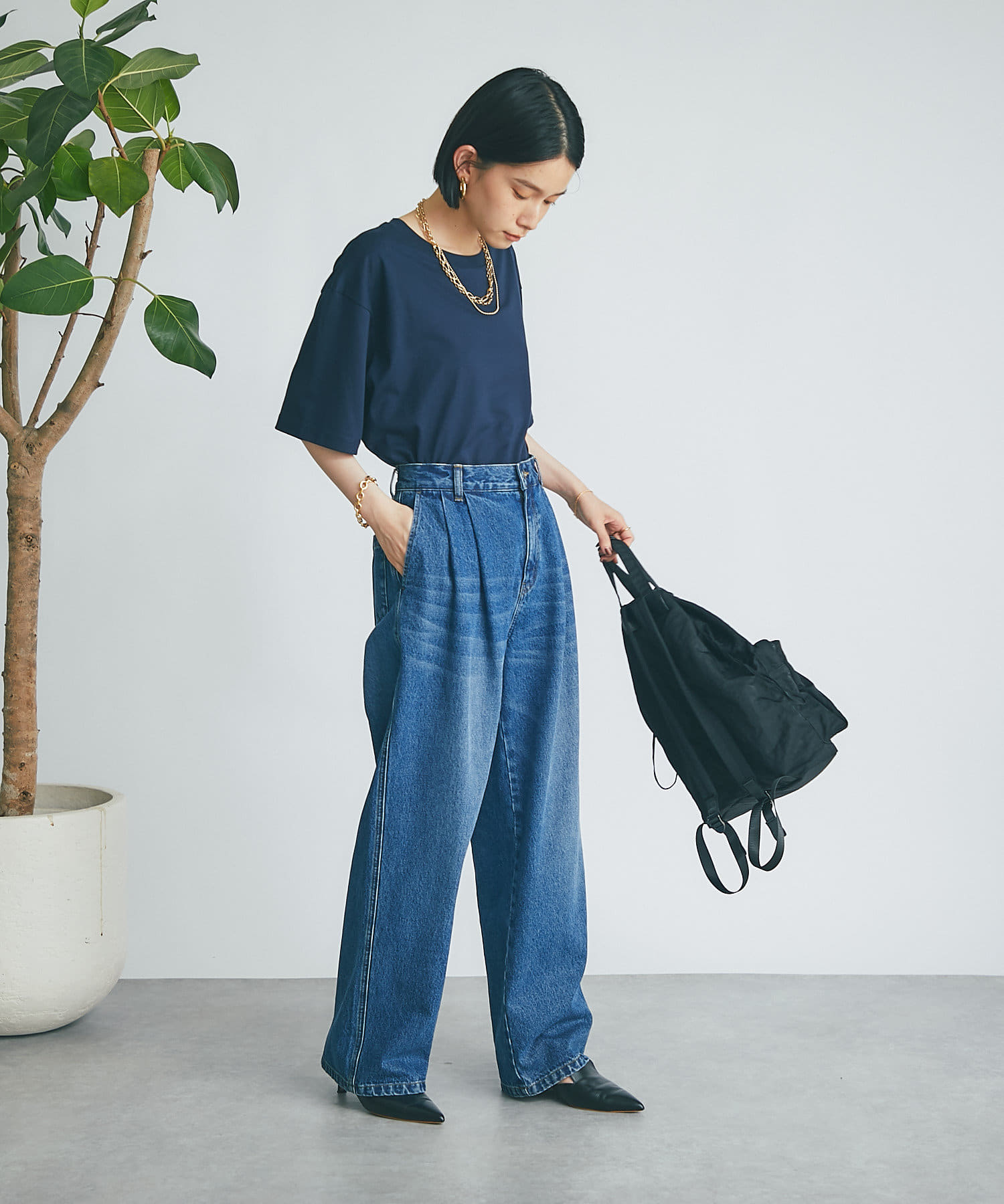 カジュアルなデニムとのシンプルなスタイリングもサマになるデザイン。