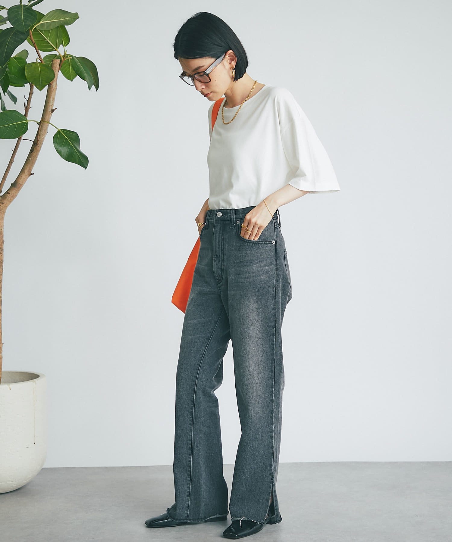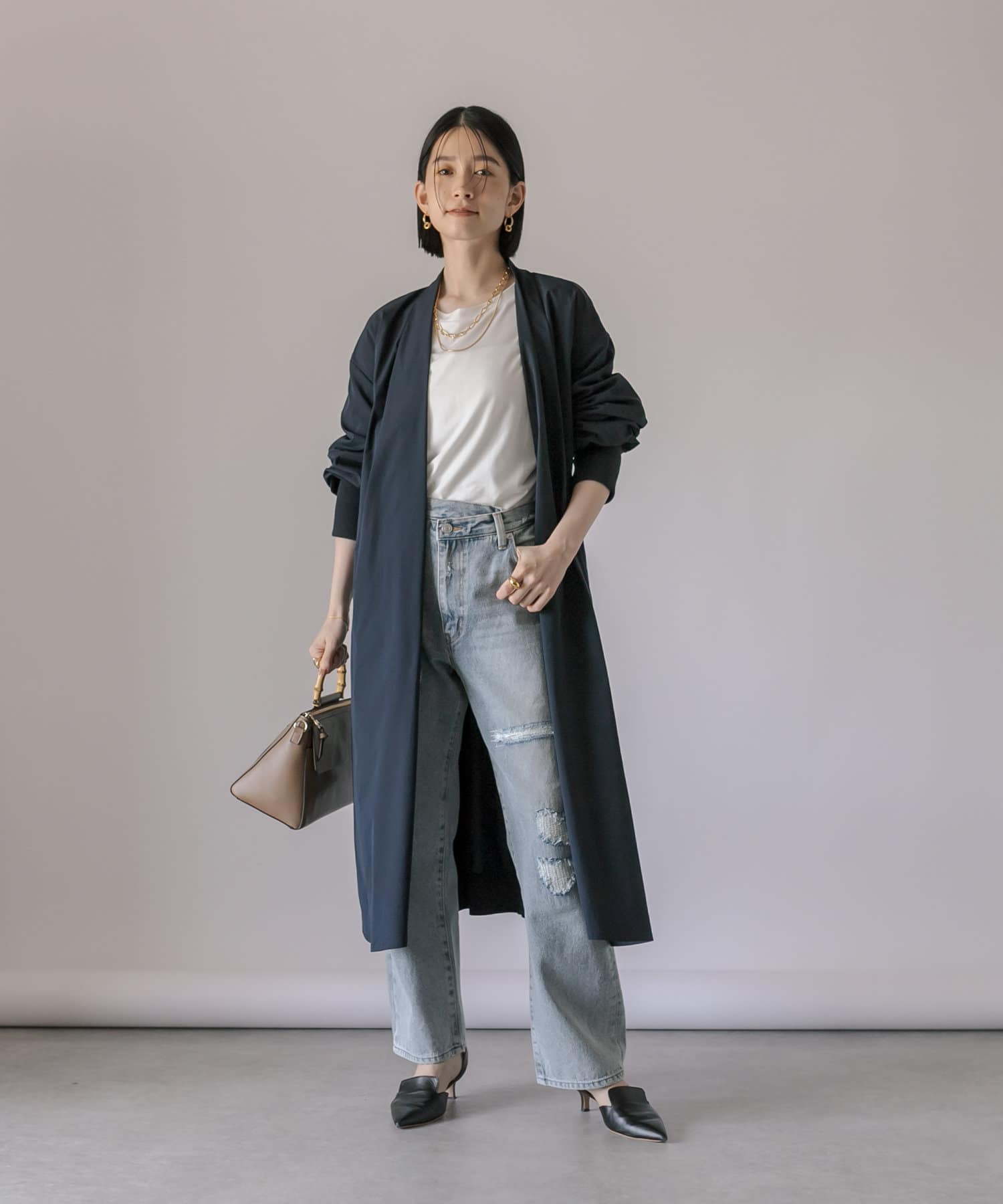 カジュアルなデニムとのシンプルなスタイリングもサマになるデザイン。
